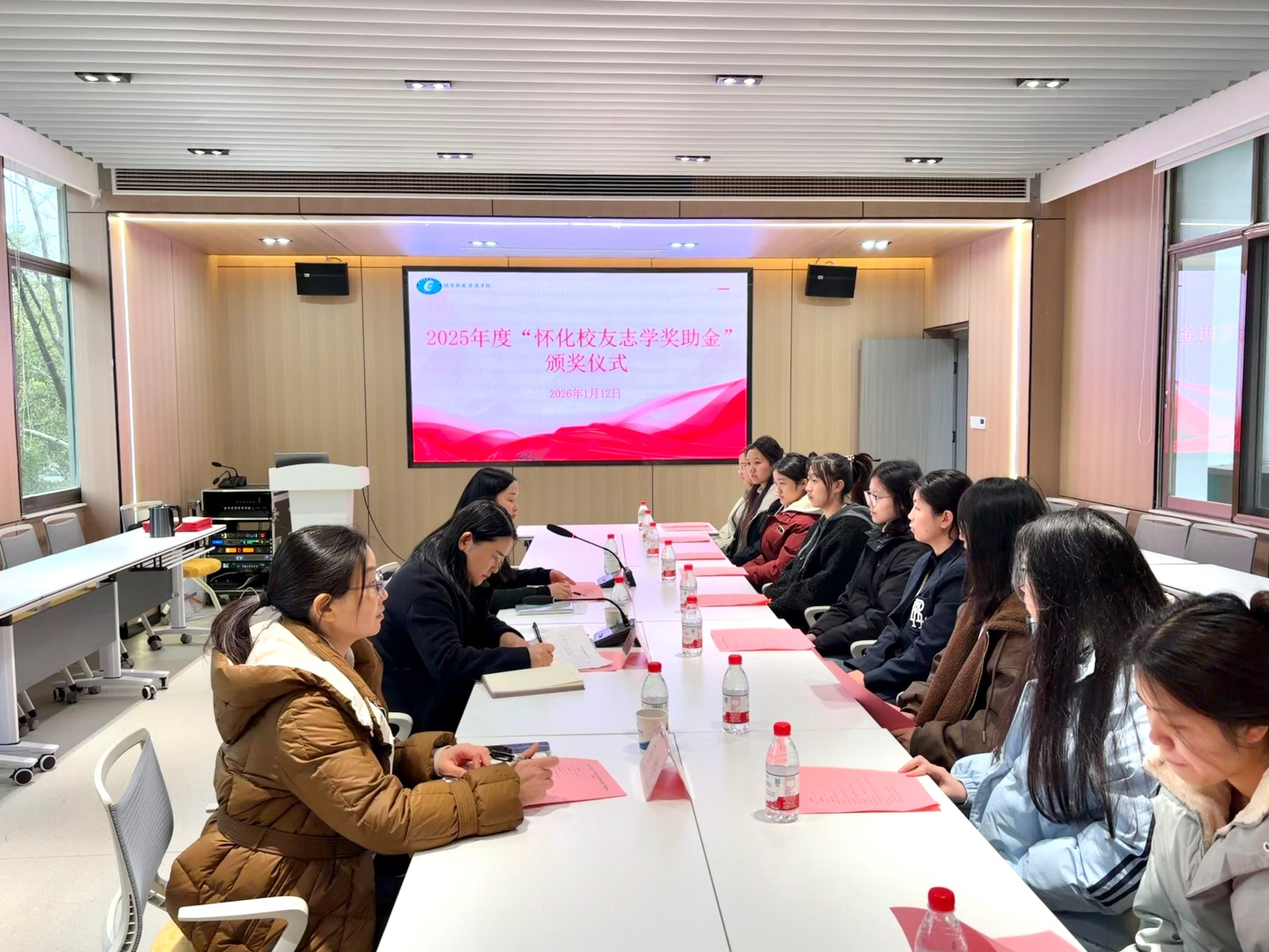 (本网讯)1月12日上午,我校怀化校友志学奖助金颁奖仪式在一教北栋201会议室举行,13名品学兼优的家庭经济困难学生每人获颁5000元奖助金。副校长李小娟出席仪式并讲话,创新创业与人工智能学院直属党支部书记余华主持仪式。