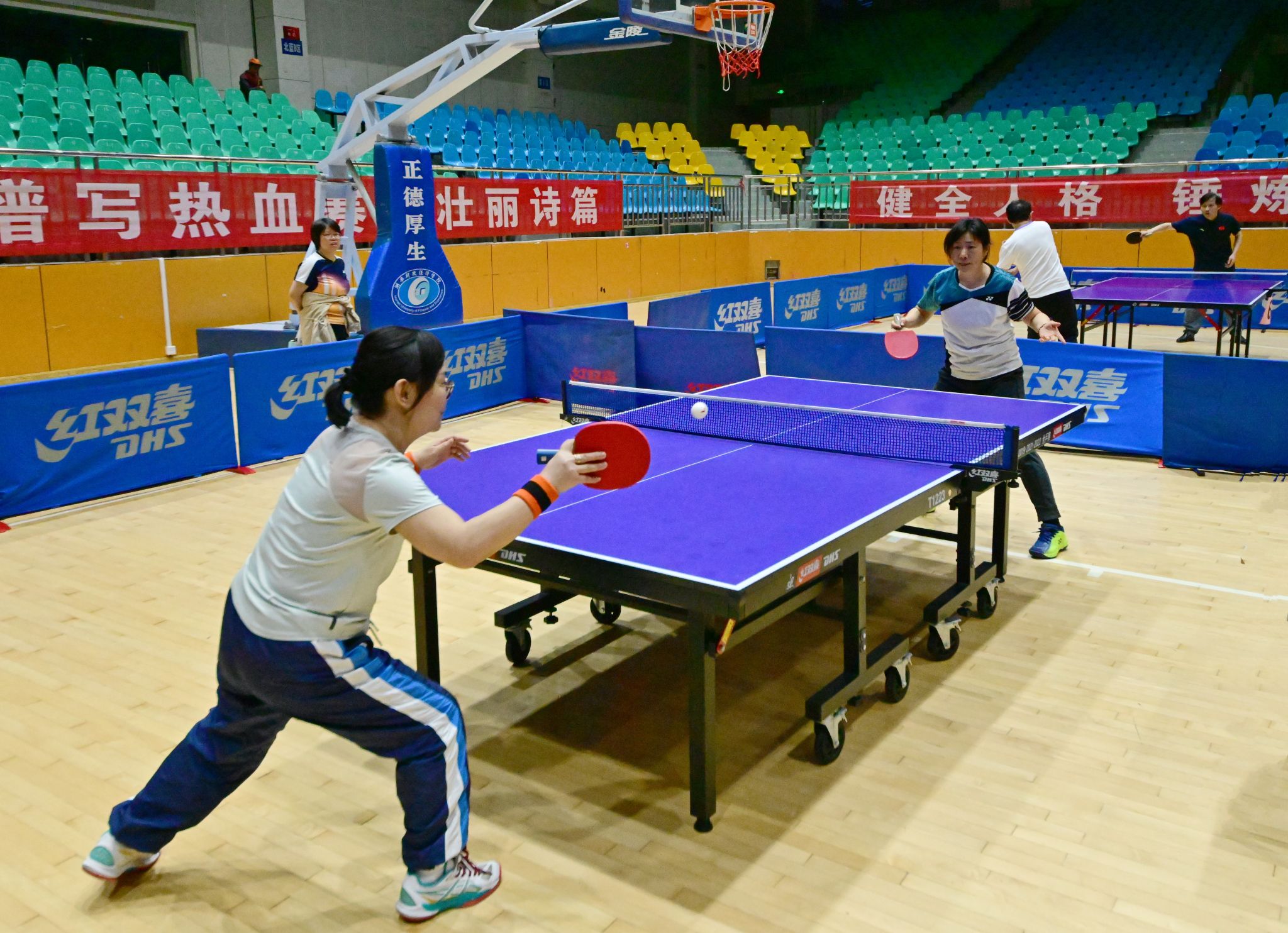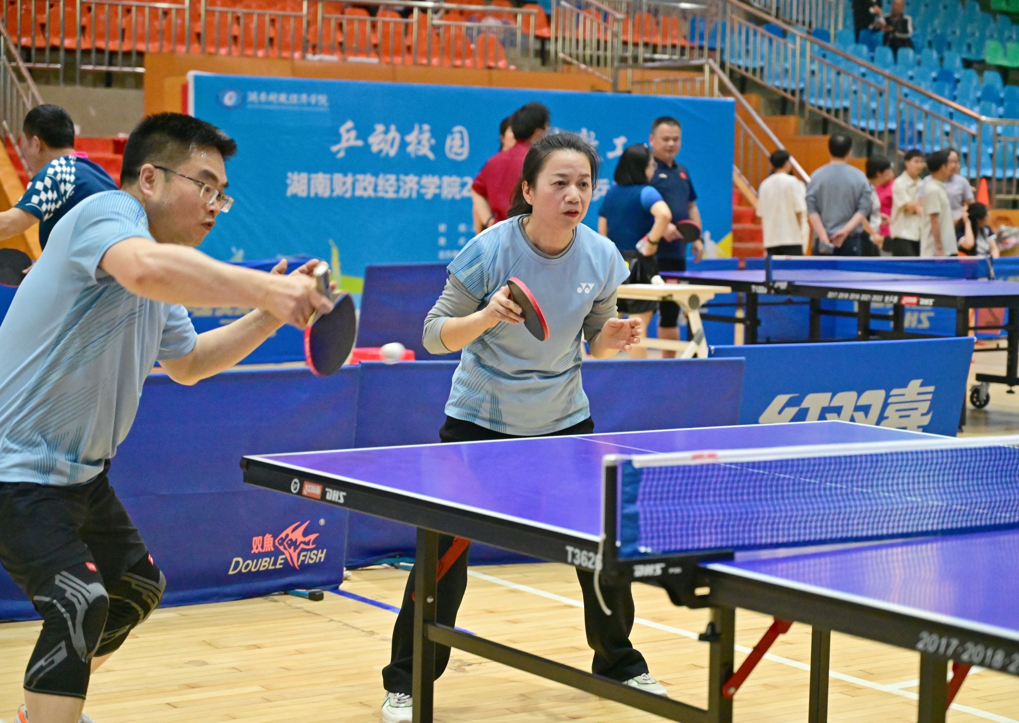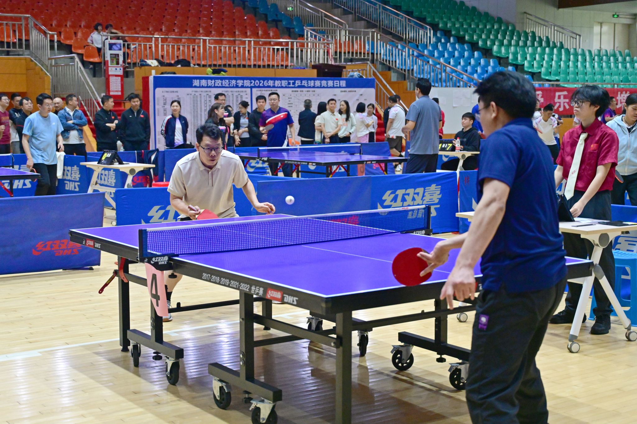 (本网讯)4月23日至25日,2026年教职工乒乓球赛在学校主校区体育馆火热举行。校党委副书记、校长苏玲出席开幕式并致辞。校党委副书记、工会主席刘钟理主持开幕式。本次赛事由校工会主办、校教职工乒乓球协会承办,共吸引来自全校18个分工会的200余名教职工踊跃参赛、同台竞技。