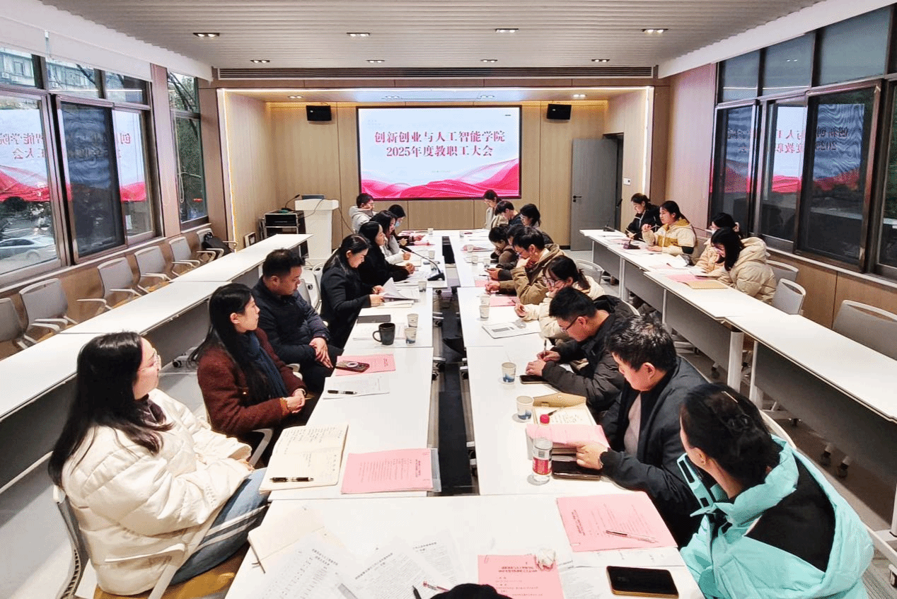 (本网讯)12月24日,创新创业与人工智能学院在一教学楼北栋201教室召开2025年度教职工大会。副校长李小娟出席会议,学院直属党支部书记余华主持会议并作2025年度工作总结。