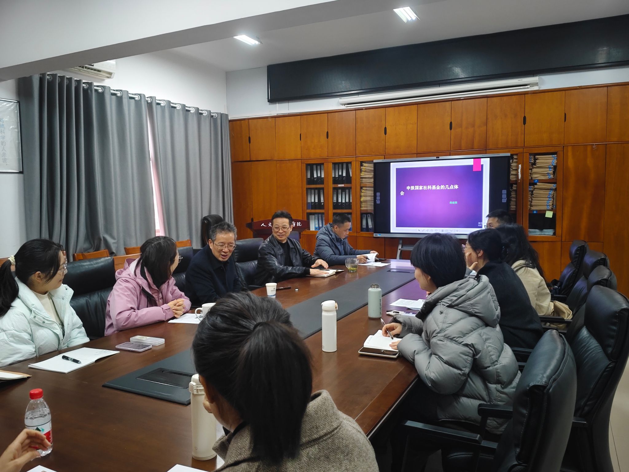 蒋建国结合国家社科基金等高水平项目的申报趋势与评审要求指出,科研申报应立足个人研究基础与学术专长,选择兼具学术价值与现实意义的课题,注重提炼创新点、彰显研究特色。他强调,学术研究须兼顾短期突破与长期积累,围绕选定方向持续深耕,筑牢学术根基,为项目申报与长远发展奠定基础。