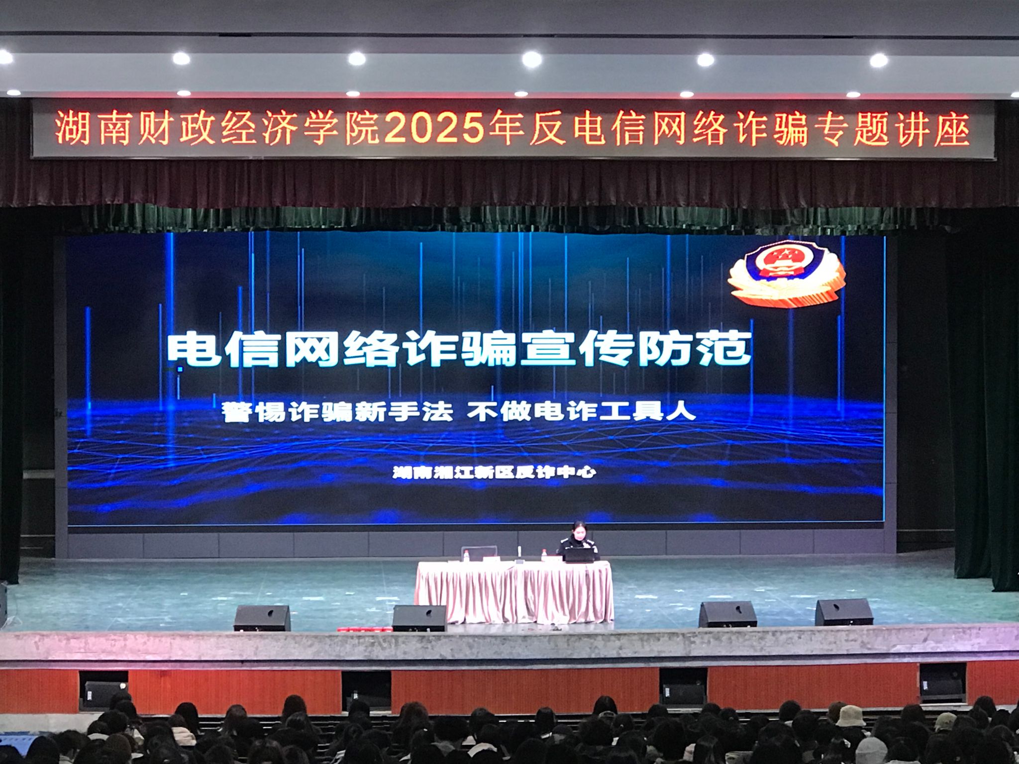 (本网讯)为切实提升校园安全防护水平,增强师生风险防范意识,11月19日晚,我校在大礼堂举办反电信诈骗与消防安全知识培训活动,约1500名师生参与学习。本次培训由学校保卫部、团委联合湖南湘江新区相关部门共...