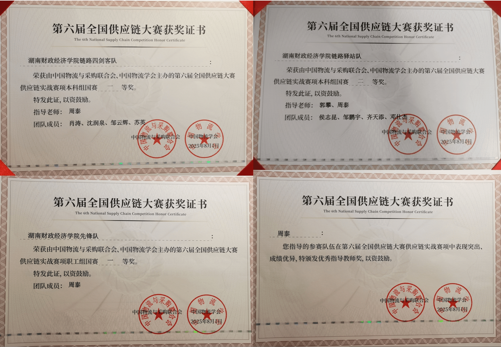 (本网讯)8月1日,第六届全国供应链大赛供应链实战赛项决赛落下帷幕,我校师生凭借扎实的专业功底与出色的实战能力,斩获本科组一等奖1项、职工组一等奖1项、本科组二等奖1项,周泰老师获评“优秀指导教师奖”。
