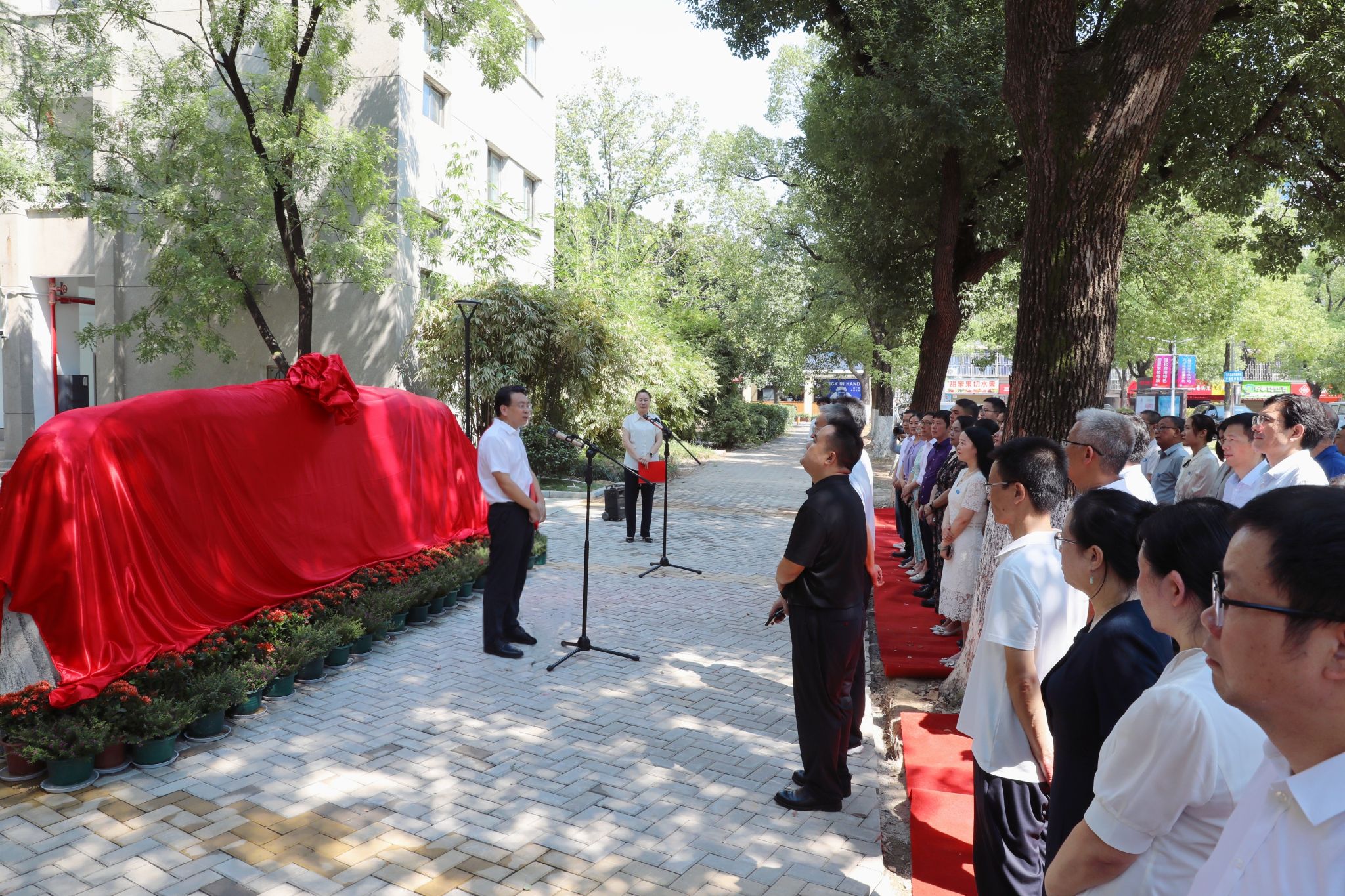 全体校领导与校友代表共同为文化石揭牌
