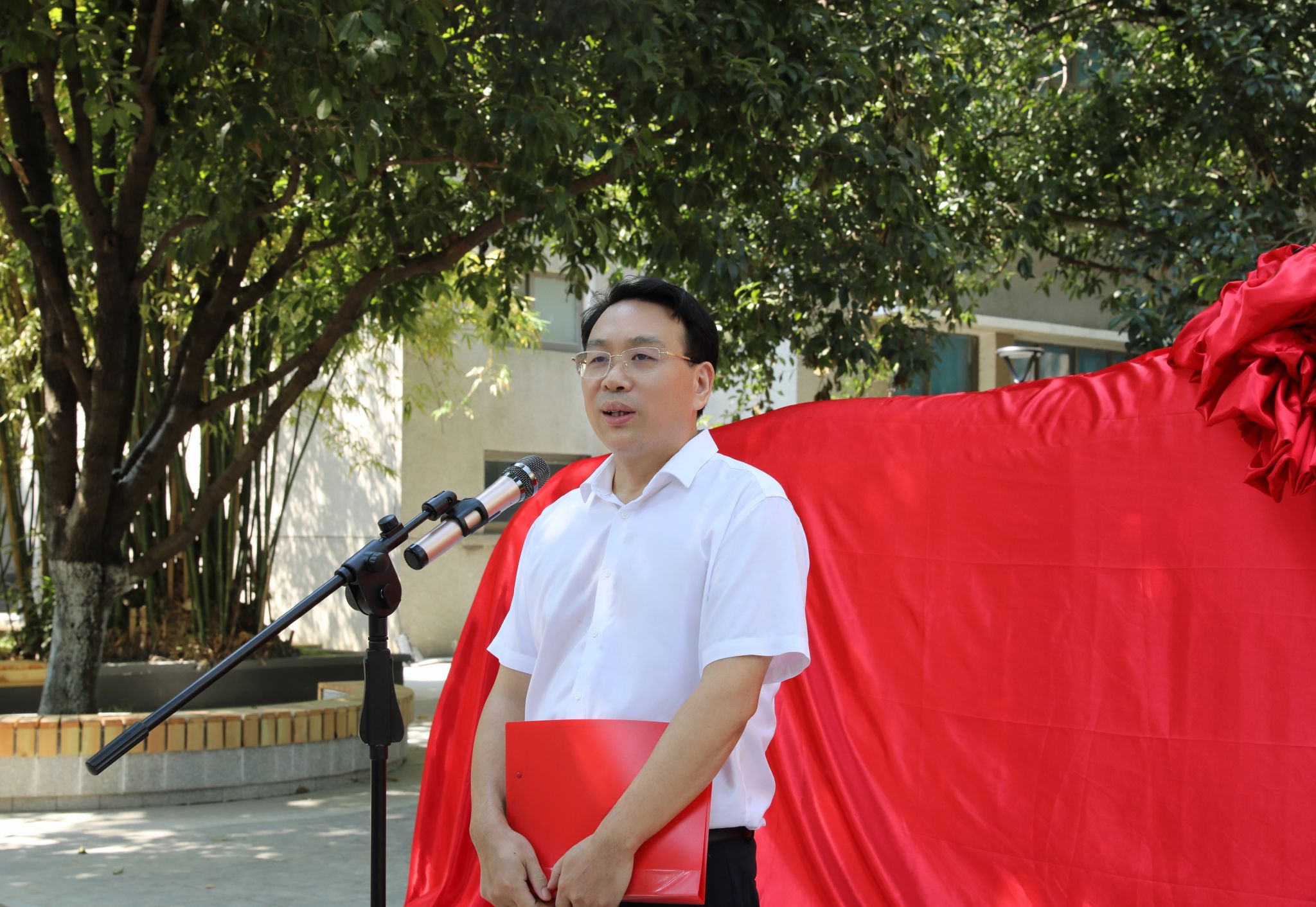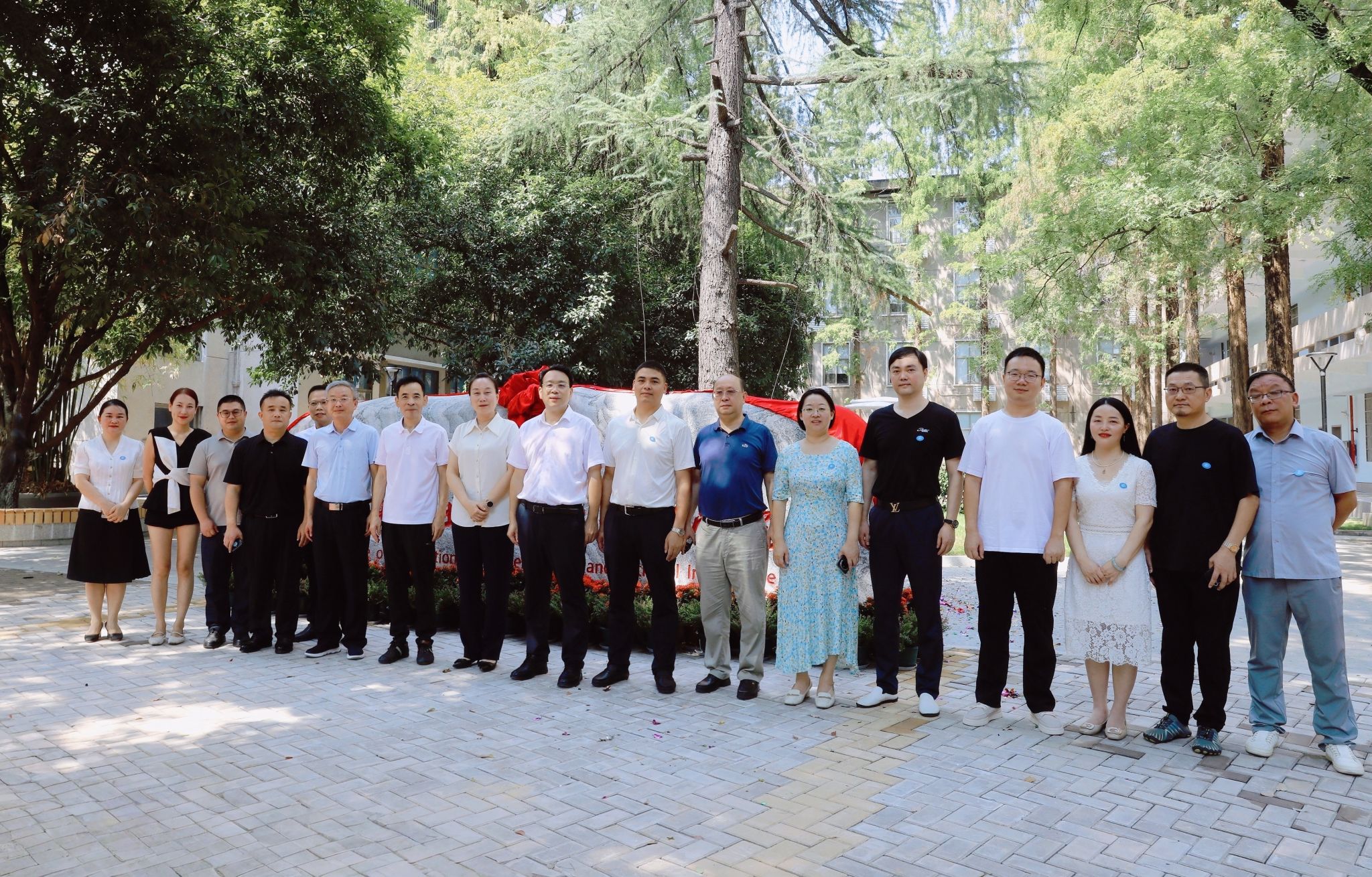 仪式上,全体校领导与校友代表共同为文化石揭牌。红绸缓缓拉下,礼炮齐鸣,现场响起热烈掌声,这方承载着学校期许与校友深情的文化石正式亮相。
