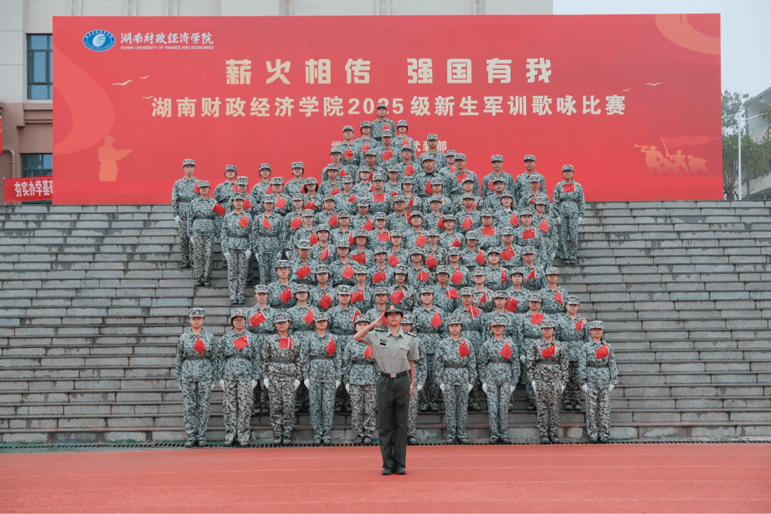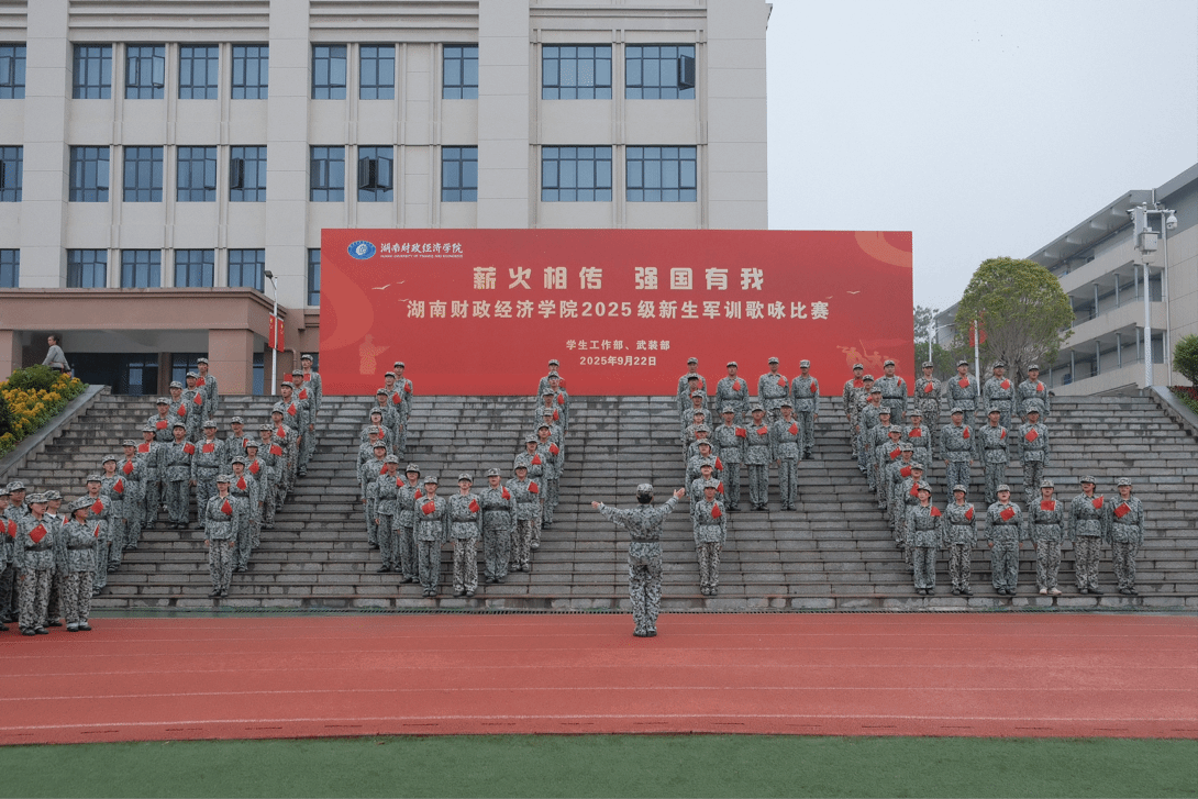 (本网讯)9月22日下午,我校雷锋校区田径场旌旗飘扬、歌声嘹亮,“薪火相传•强国有我”2025级新生军训歌咏比赛在此举行。来自各营连的13支代表队同台竞技,用歌声展现湖财新生的昂扬风采。