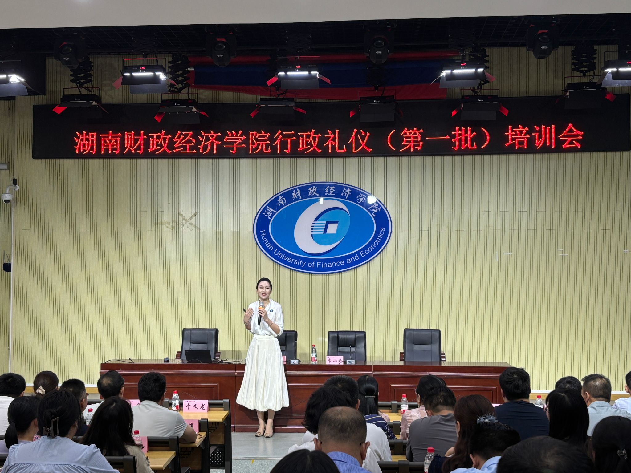 (本网讯)10月11日下午,我校在2J03报告厅举办行政礼仪培训会。会议由校党委委员李小娟主持,全体中层干部、各单位综合科(办)主任及相关工作人员参加。中国专业人才库礼仪专家委员会委员、人文与艺术学院专业教师年颖受邀担任主讲。