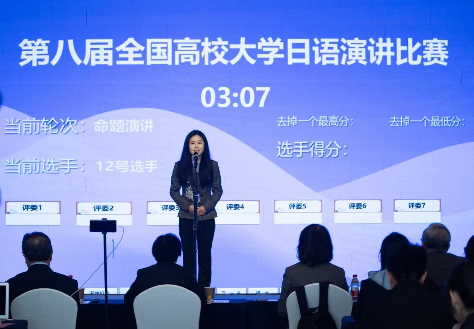 (本网讯)在近日落幕的第八届全国高校大学日语演讲比赛中,我校外国语学院英语专业学生林烯儿凭借扎实的语言功底与出色的现场表现,荣获全国二等奖,创下我校在该项赛事中的历史最佳成绩。