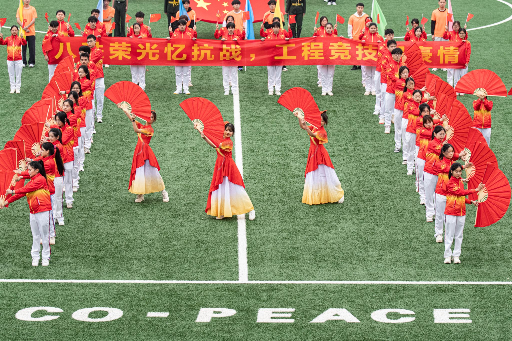 在入场仪式与文体表演结束后,三架由我校校友提供的无人机悬挂励志横幅飞越运动场上空,以现代科技手段生动诠释了“专业强基+科技赋能+人文铸魂”的育人理念,成为开幕式上的亮点环节。