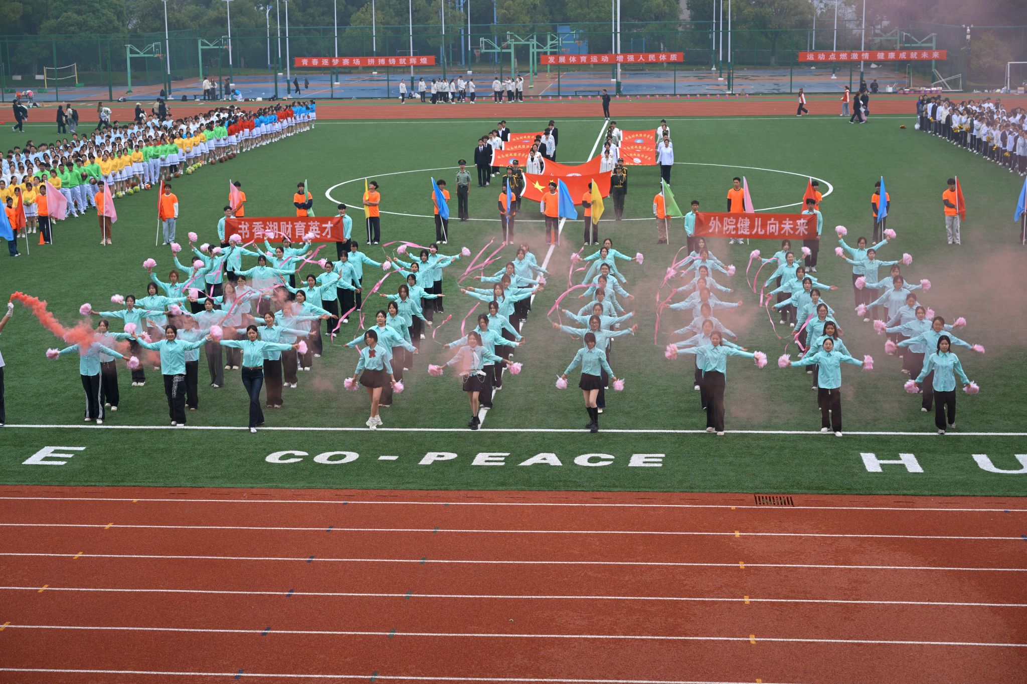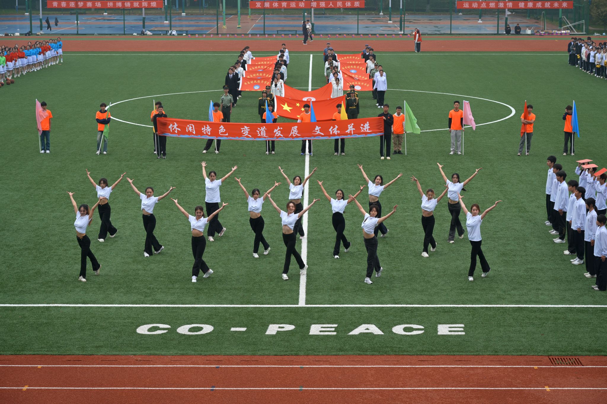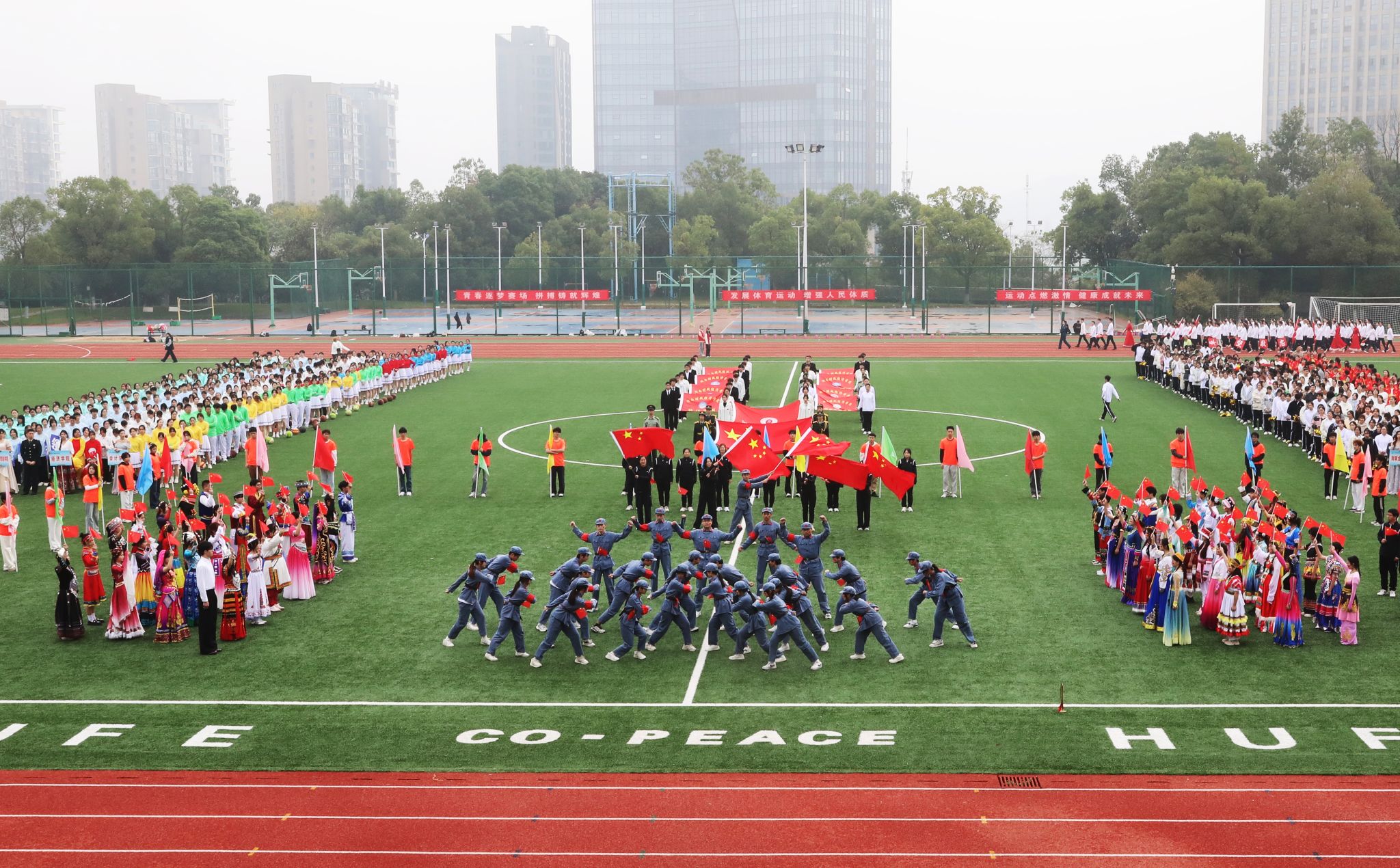 开幕式采用入场仪式与文体表演相结合的形式。在激昂的旋律中,国旗方阵、校旗方阵、彩旗方阵精神抖擞、步伐铿锵,14个二级学院代表方阵各具特色,充分展现了各学院的学科特色与文化内涵。舞龙舞狮威武灵动,武术表演刚柔并济,体育舞蹈活力四射,扇子舞优雅动人。其中,“民族团结”“祖国统一”等主题表演以鲜明的时代内涵引发全场热烈掌声。