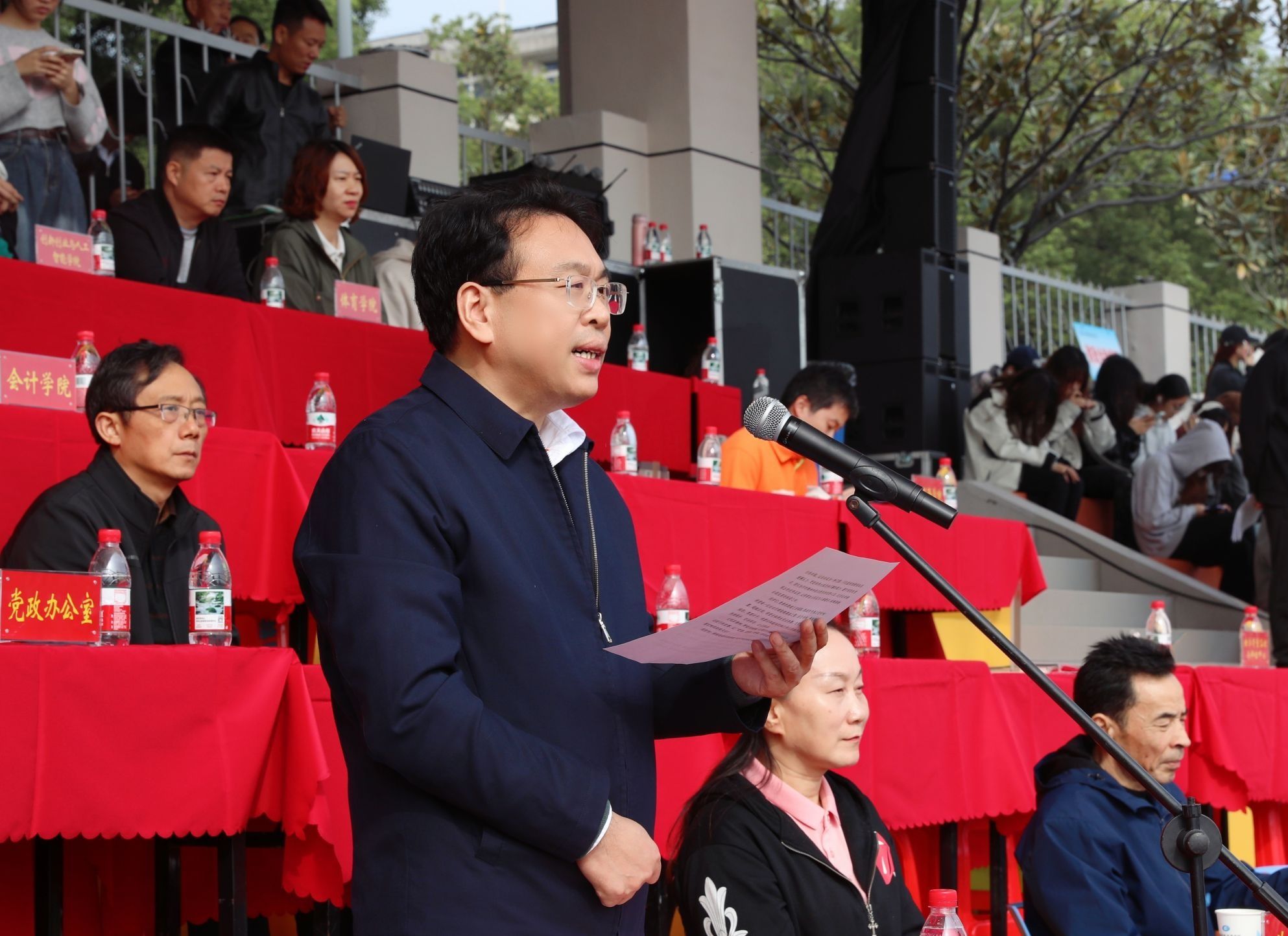 (本网讯)10月31日至11月1日,我校运动会在主校区田径场举行。近三千名师生在焕新赛场上同台竞技,以拼搏精神展现体育魅力。校领导、各单位负责人出席开幕式。校党委书记易棉阳致开幕辞并宣布开幕,副校长潘爱民主持开幕式。