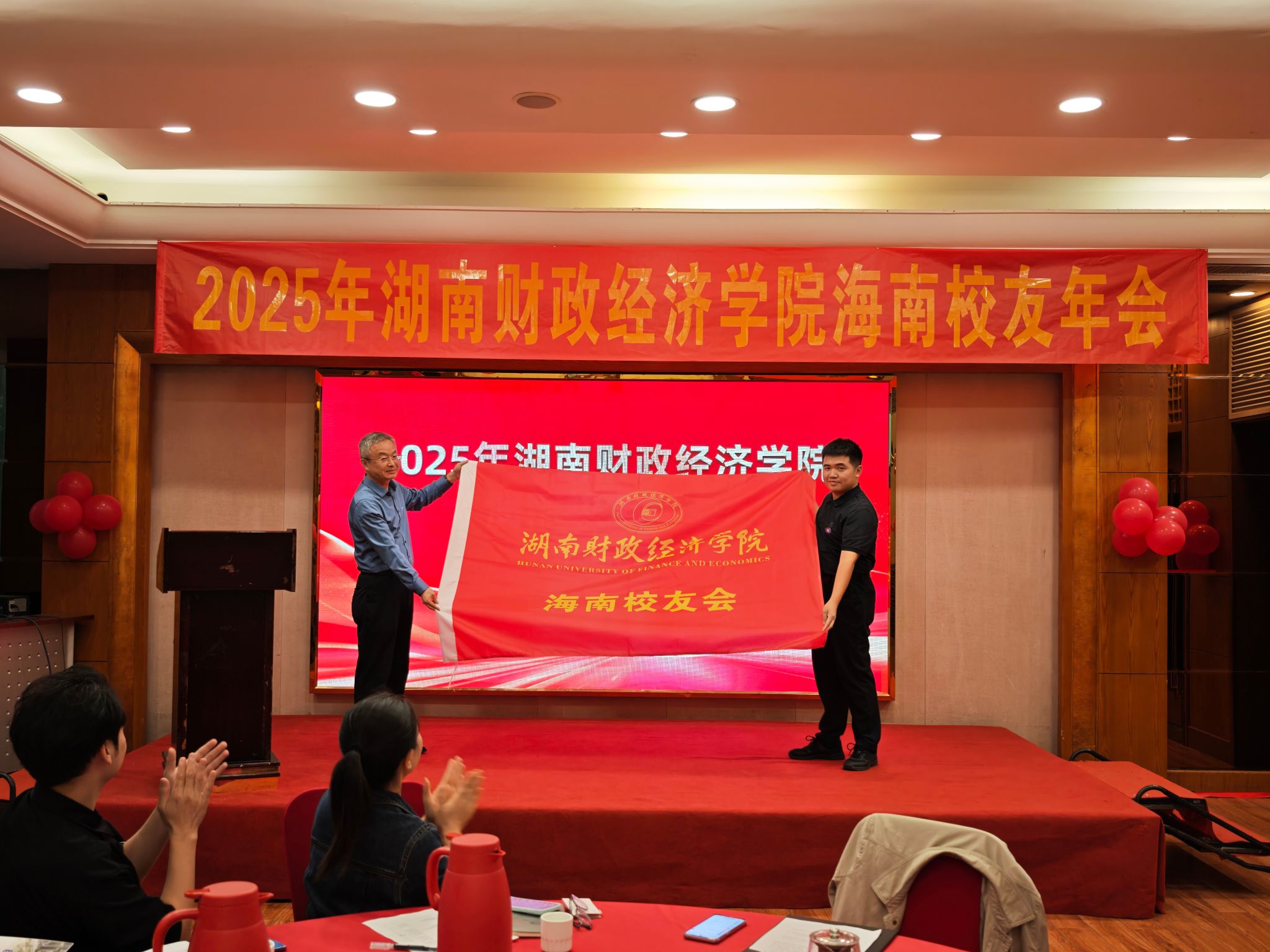在海南校友分会换届大会上,刘钟理为新任理事会成员颁发聘书,并代表学校授予分会会旗。他对分会顺利换届表示祝贺,向长期以来关心支持母校发展的海南校友表示感谢,并介绍了学校近年来在学科建设、人才培养、科研创新等方面取得的突破性进展。他强调,校友是学校最珍贵的财富,母校将始终作为校友们的坚强后盾和精神家园,持续关注和支持每一位校友的发展。