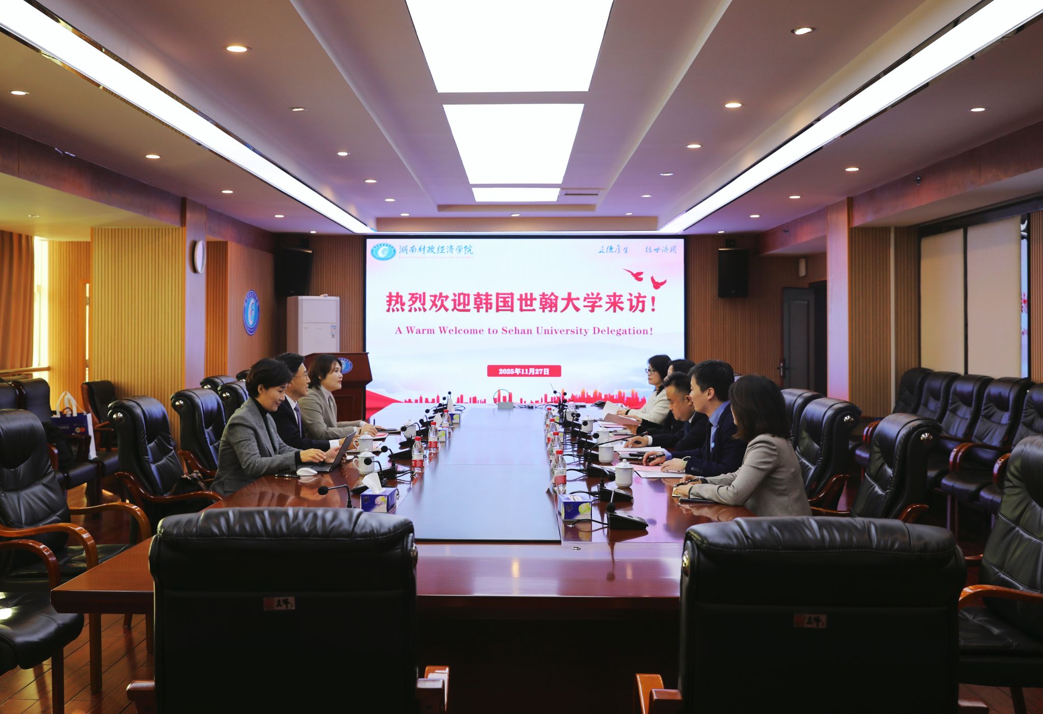 李昇勋介绍了世翰大学的办学特色,重点分享了该校在应用型人才培养方面的创新理念与实践经验。他表示,两校在学科设置、发展定位、注重应用型人才培养等方面有相同的理念和机制,期待未来能在联合培养、学生交流、学分互认等方面开展更深层次合作,推动师生互访,开展更多文化互鉴与实习实践活动。