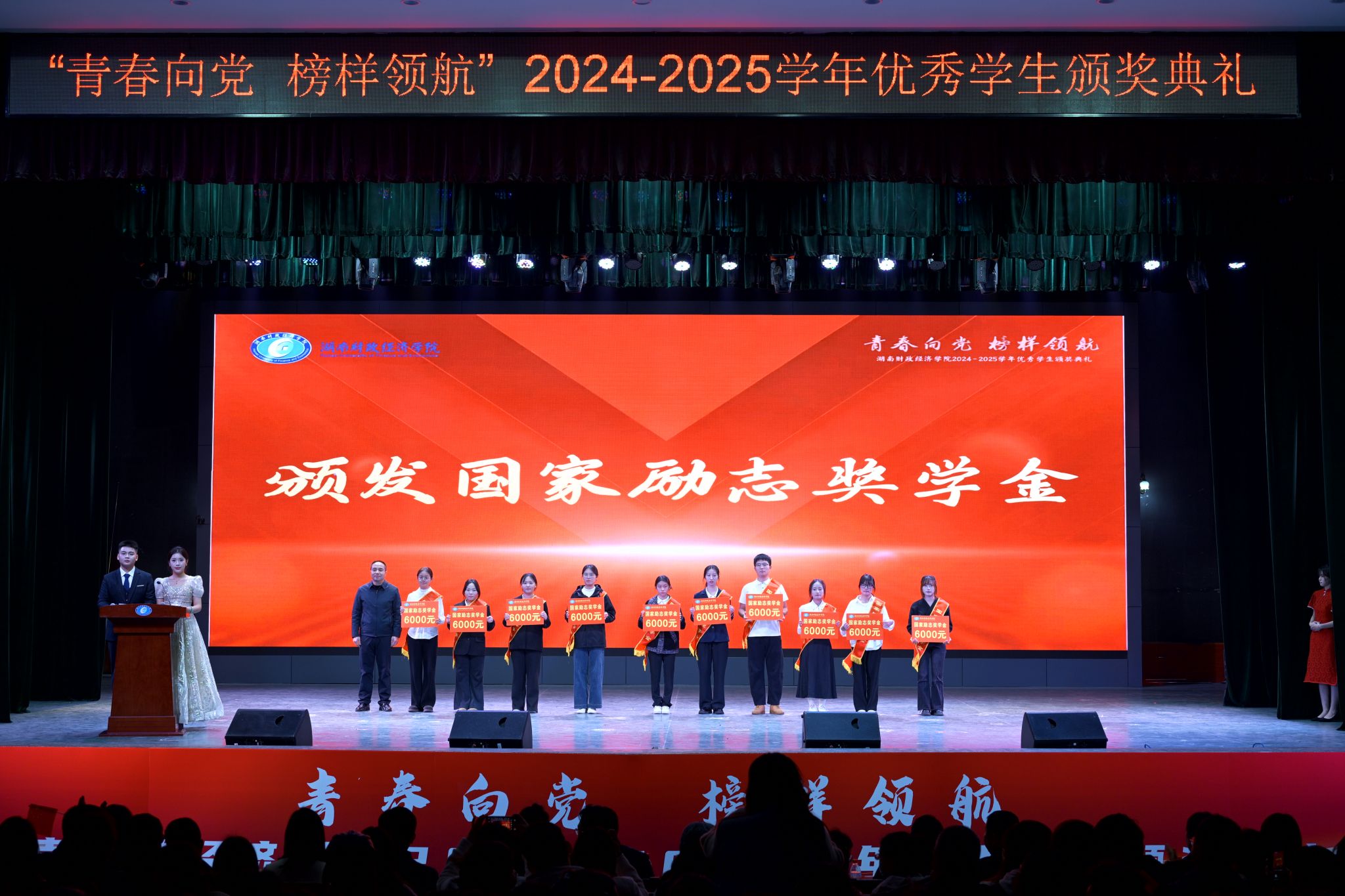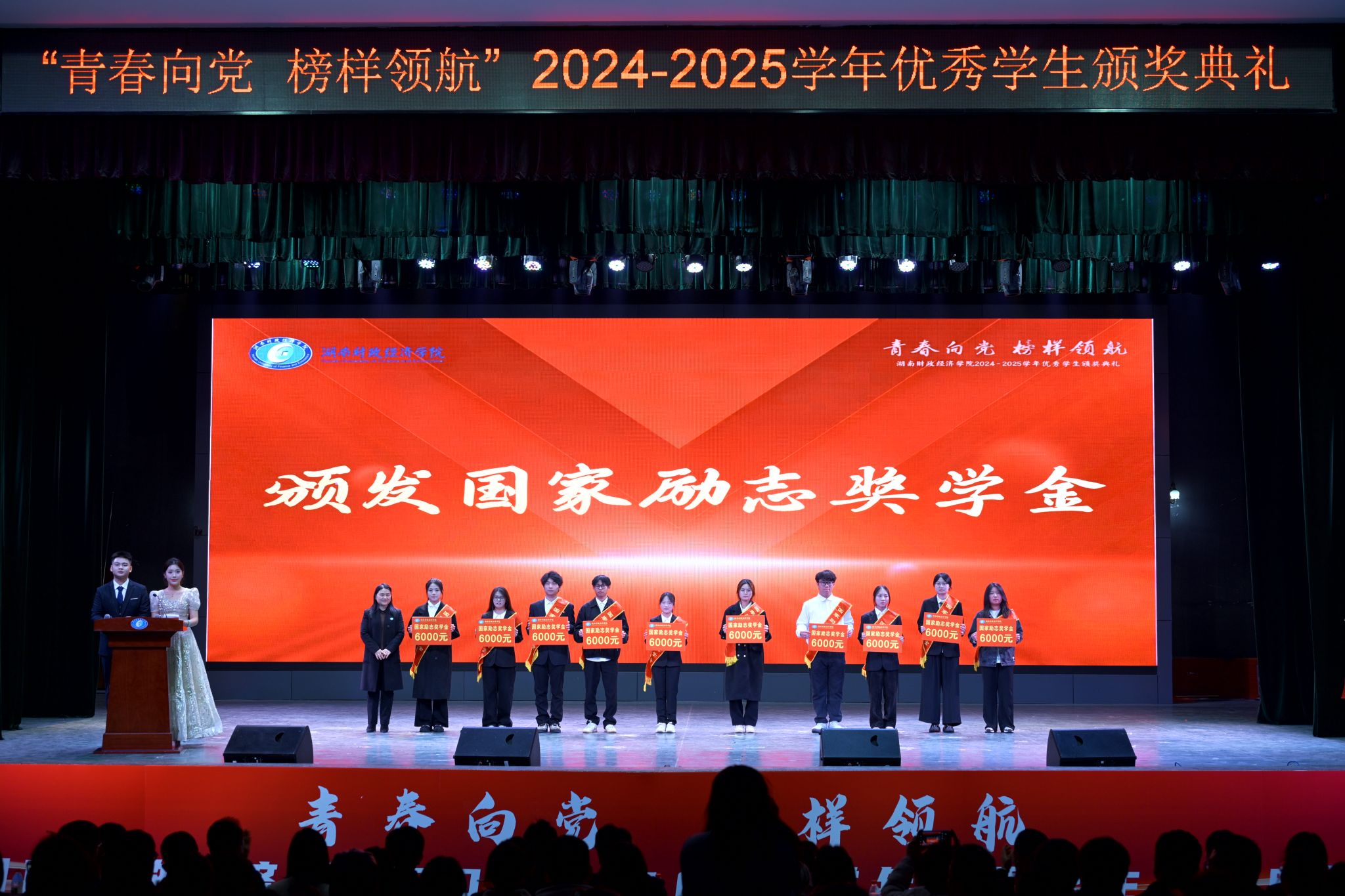 典礼采用“视频展示+颁奖表彰”相结合的形式,既展现了获奖者的奋斗历程,又对他们的成绩予以了现场表彰。获奖群体中,既有国家奖学金、国家励志奖学金、校级奖学金获得者,也有在德智体美劳全面发展中表现突出的三好学生、学习标兵、优秀学生干部及优秀毕业生,还有一批氛围融洽、学风优良的先进班集体、优秀寝室和学习型寝室。