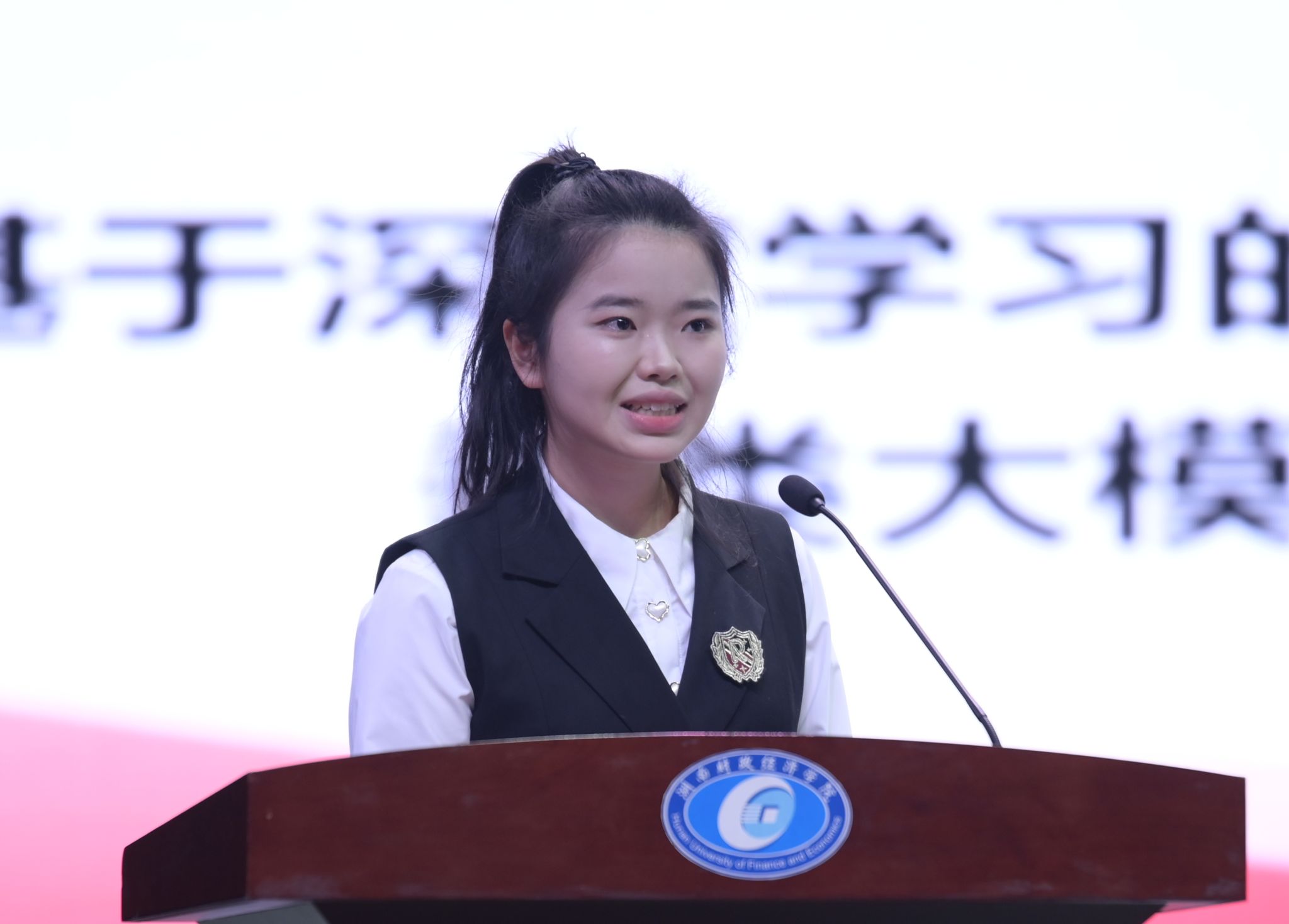 典礼上,易棉阳发表致辞。他从《论语·先进篇》中“先进”一词的文化源流谈起,深刻阐述了中国特色社会主义文化体系的丰富内涵,指出文化是国家竞争的核心与民族延续的根基。他勉励全体学生以受表彰者为榜样,奋发进取、追求卓越;同时希望获奖学生戒骄戒躁,持续发挥模范引领作用,积极带动身边同学共同成长,为班级、为学校、为社会发展贡献青春智慧。
