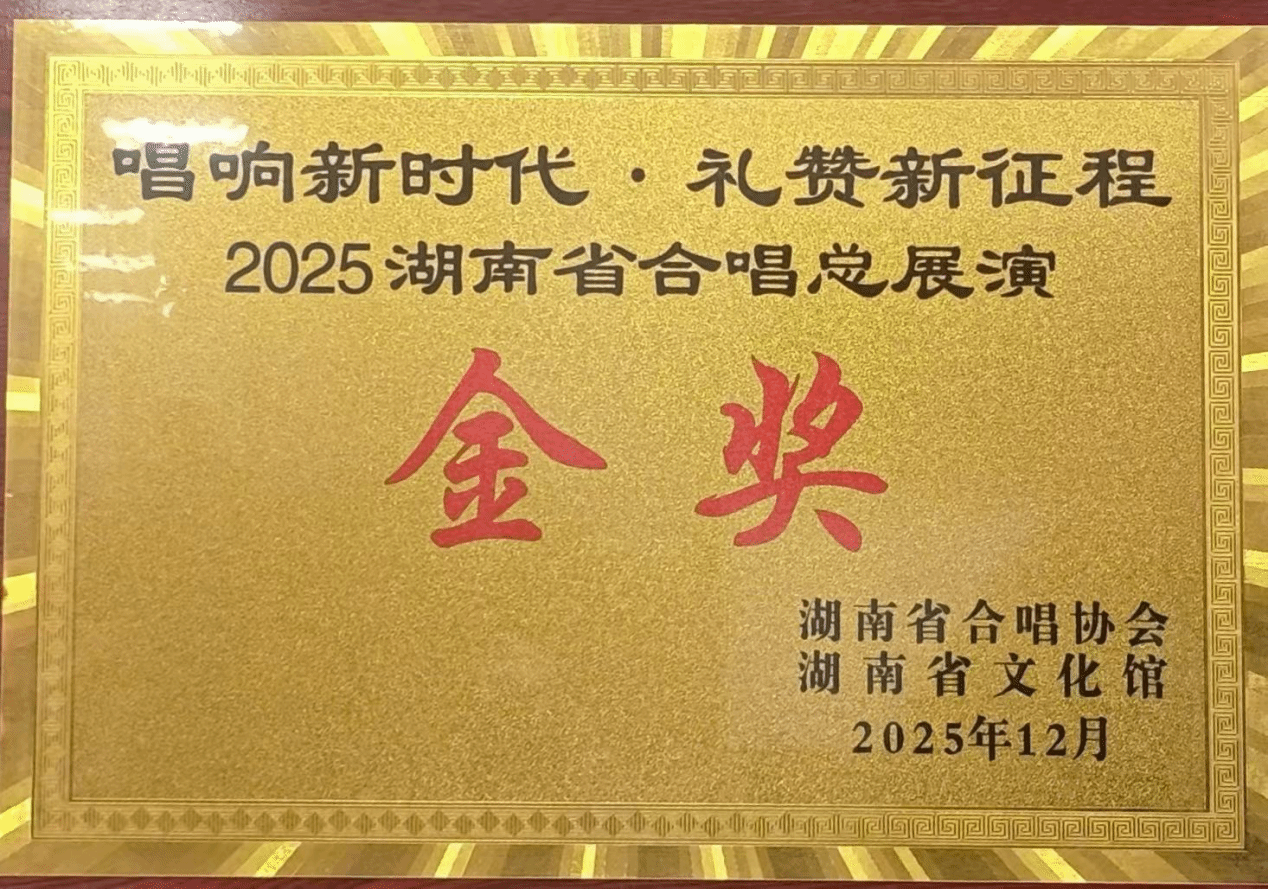 (本网讯)12月28日,在“唱响新时代·礼赞新征程”2025湖南省合唱总展演中,我校大学生合唱团作为大学生组唯一非专业团队凭借精湛演绎斩获该组别金奖。人文与艺术学院教师张亚男荣获“最佳指挥奖”,会计学院学生龙菲琪荣获“最佳伴奏奖”。