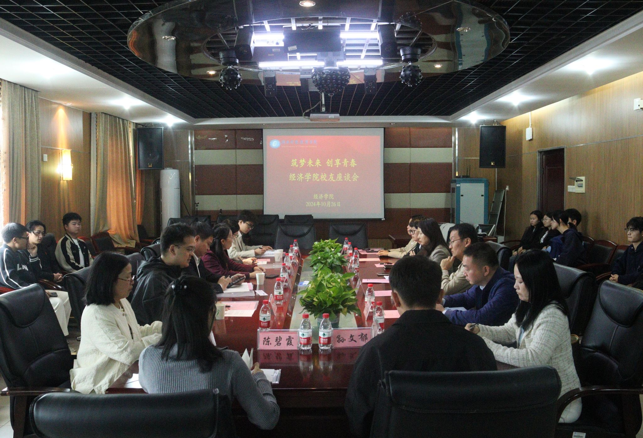 (本网讯)10月26日下午,经济学院在办公楼1014会议室举办“筑梦未来 创享青春”主题校友师生座谈会。副院长陈雯、院党委副书记刘英、教师代表、在校生代表与众多校友欢聚一堂,共同重温往昔情谊,共谋未来发展蓝图。座谈会由刘英主持。