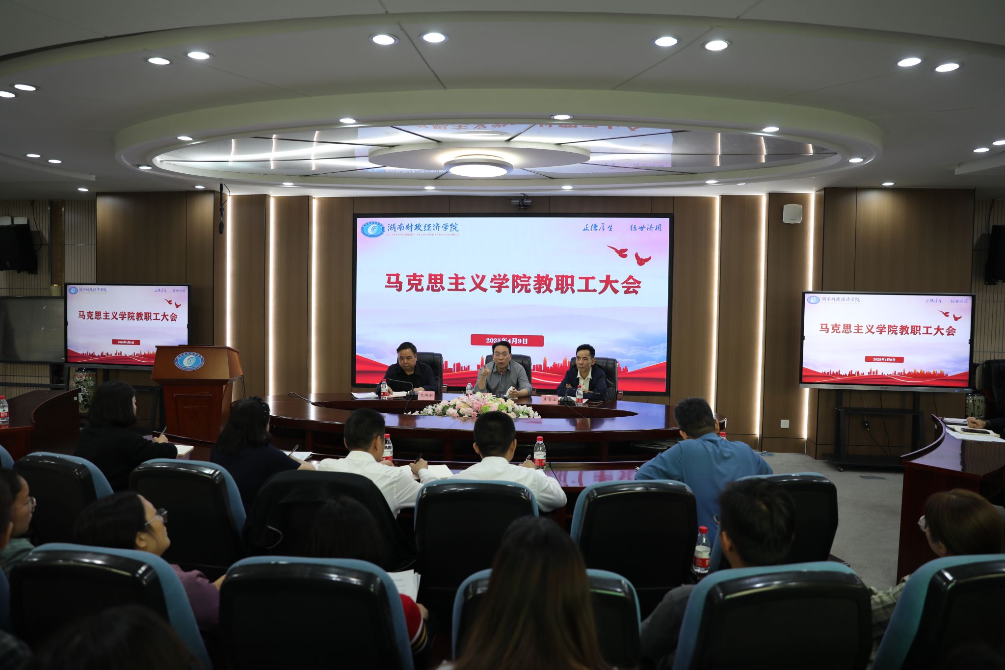 (本网讯)4月9日下午,马克思主义学院在主校区办公楼视频会议室召开教职工大会。校党委书记易棉阳,纪委书记李雪山,党委委员、宣传部、统战部部长文炳勋出席会议。会议由李雪山主持。