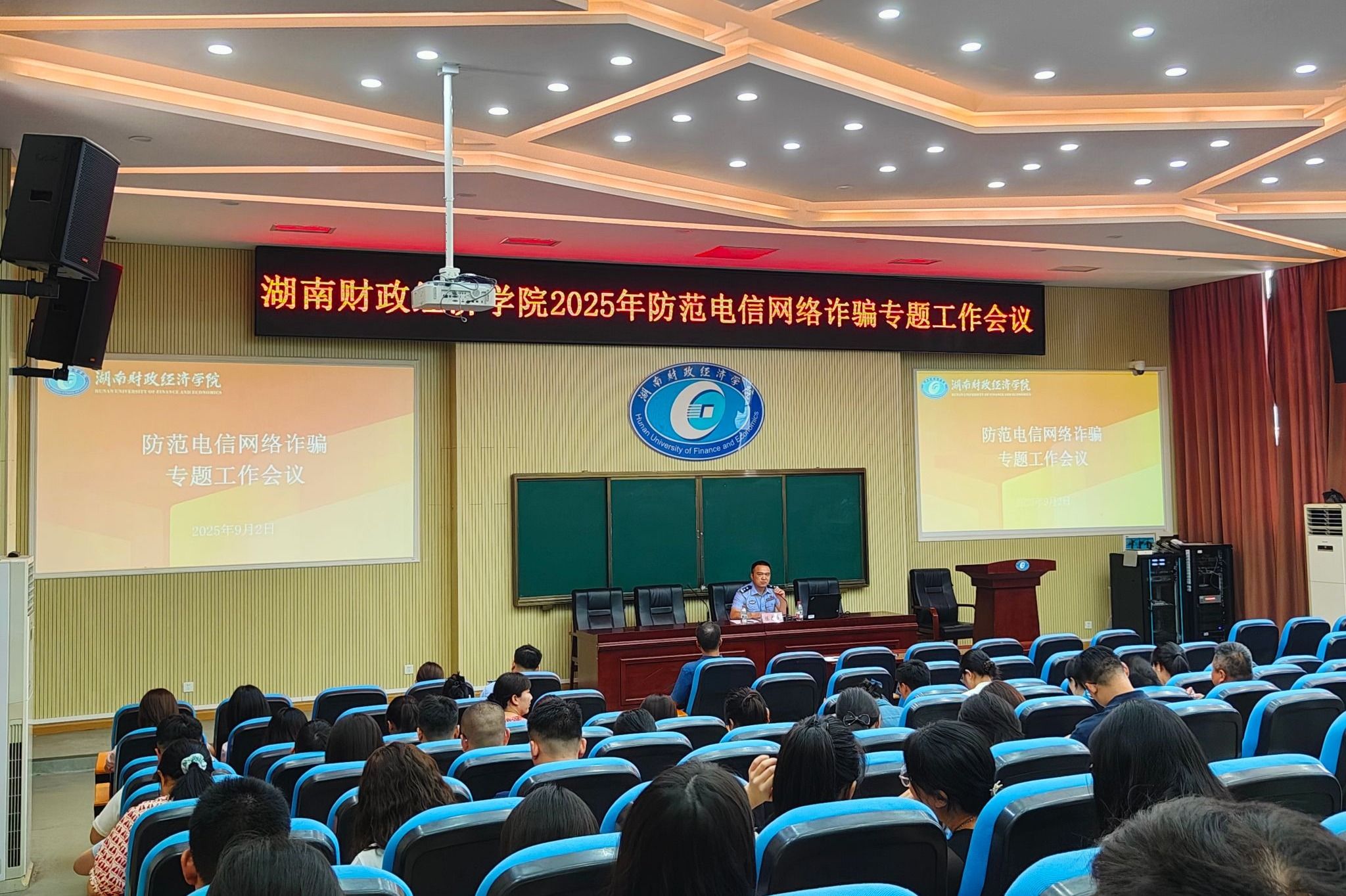 (本网讯)为持续推进平安校园建设,进一步筑牢校园电信网络诈骗“防护墙”,9月2日上午,学校召开防范电信网络诈骗专题工作会议。会议邀请长沙市公安局岳麓分局咸嘉湖派出所副所长陈春红为各二级学院学工办主任、全体专职辅导员普及防范电诈相关知识。