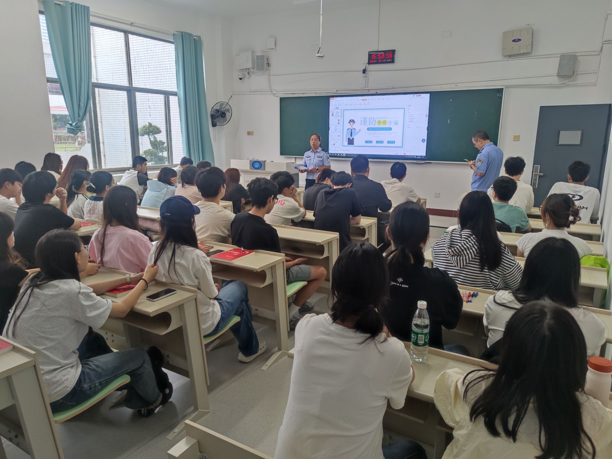 (本网讯)为切实提高学生防范电信网络诈骗的意识和能力,9月19日,学校保卫部联合长沙市公安局岳麓分局咸嘉湖派出所开展“反诈宣讲进班会”活动,通过民警讲解案例、互动答疑等形式,为同学们送上生动的反诈“必修课”。