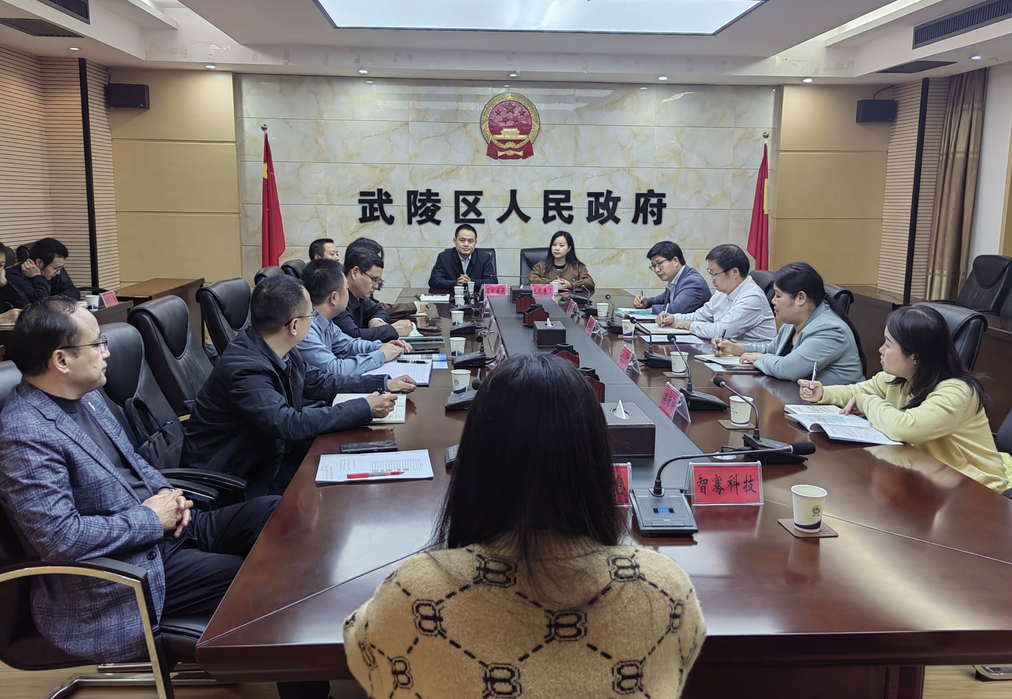 座谈会上,武陵区人民政府副区长吴金对学院一行的到访表示欢迎,并系统介绍了武陵区的人文底蕴、区位优势、产业布局与经济发展现状,重点阐述了当地在数字经济、智慧产业等领域的发展需求。