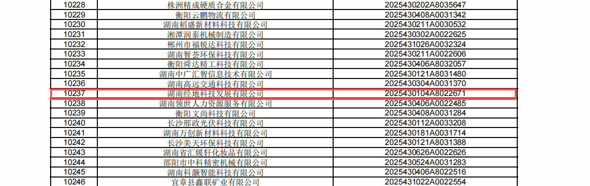 (本网讯)11月10日,湖南省科学技术厅公布2025年第三批入库科技型中小企业名单,湖南经地科技发展有限公司凭借持续创新能力与稳健发展态势成功入选,这也是公司自2024年首次入库以来连续第二年获此认定。