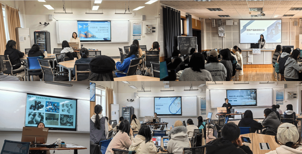 本次订单班面向国际经济与贸易和国际商务专业2022级应届毕业生,开展为期八天的专项培训。培训采用“理论授课+企业实战”的定制化模式,实现高校专业教学与企业岗位需求的深度衔接。以曾瑛为首的企业讲师团队,围绕外贸形势、钢铁市场、产品知识、订单操作、客户开发等实务内容开展系统教学,推动课堂理论与商业实践深度融合。