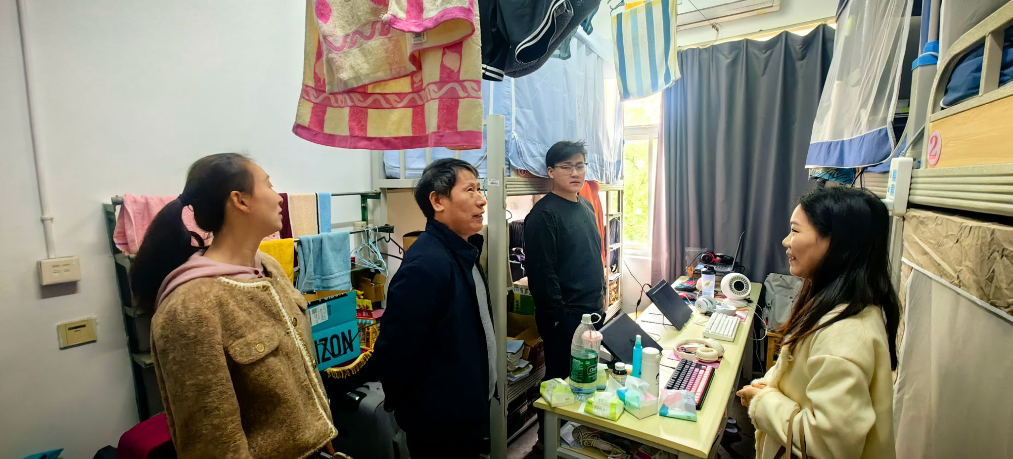 走访过程中,老师们逐一检查寝室卫生与安全状况,叮嘱同学们注意用电安全与环境卫生,共同维护良好住宿环境。戴恩湘与同学们深入交流,细致询问学业进展与实际需求,围绕期末复习与英语等级考试给予备考建议,并提醒大家注意天气变化,保持身心健康。戴恩湘表示,学院学工队伍将持续关注学生动态,及时提供支持与帮助。
