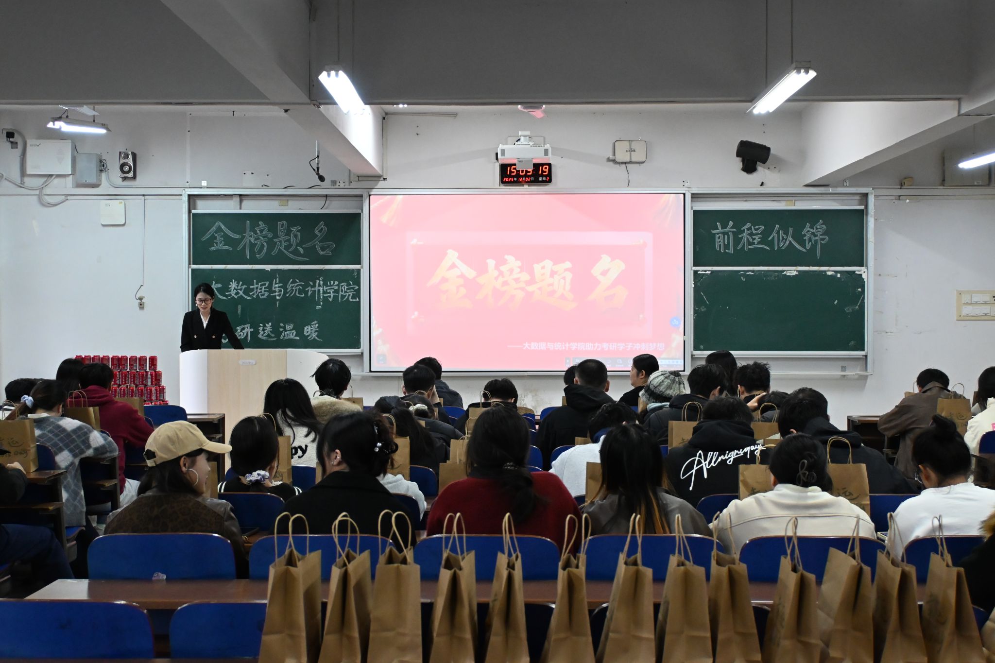 (本网讯)12月2日下午,大数据与统计学院在主校区三教学楼3111教室举办“考研考公送温暖”活动。学院党总支书记王萱、副院长吕胜祥及部分教师代表出席,为正在备战考研考公的学子送上关怀与鼓励。