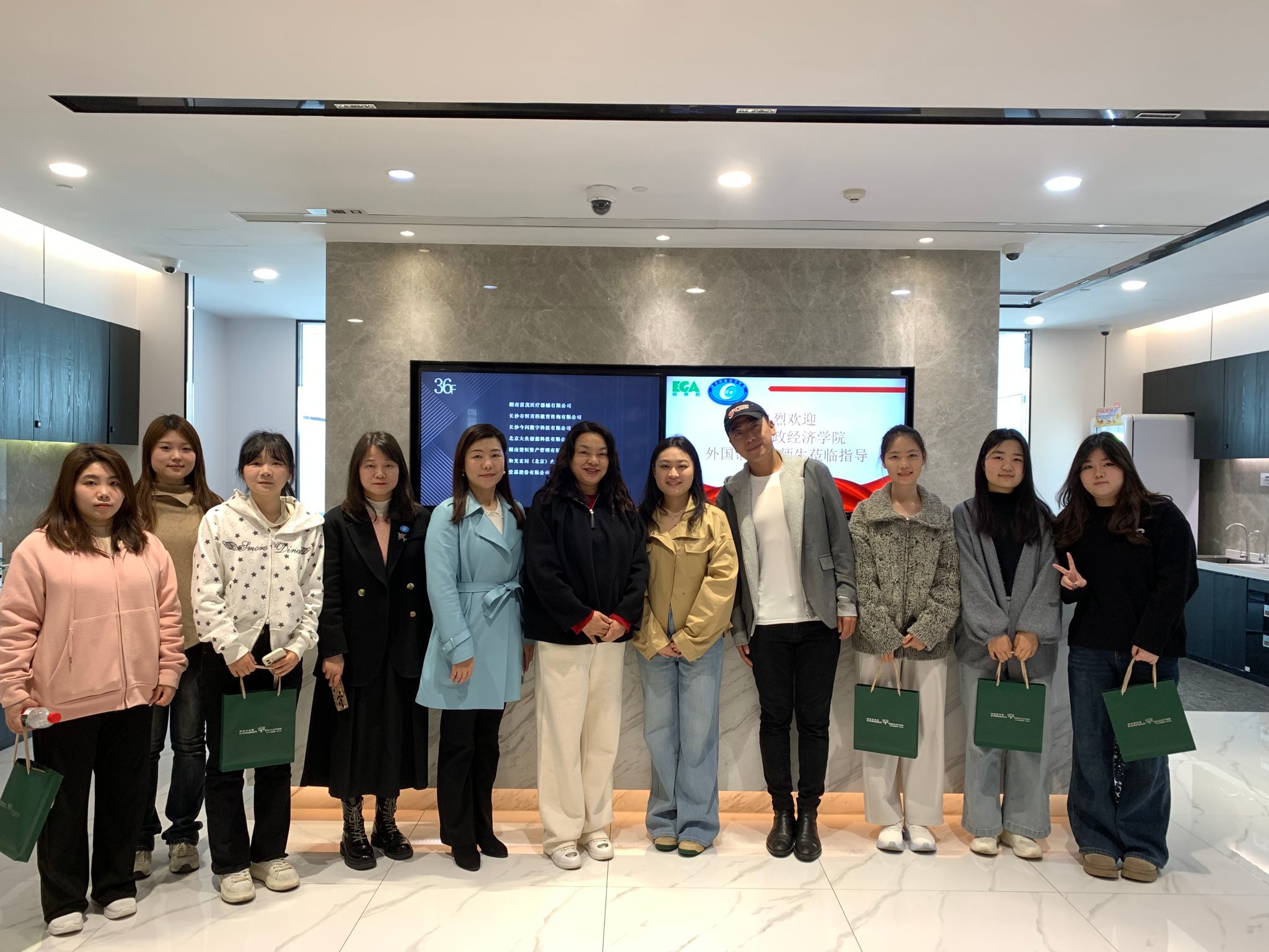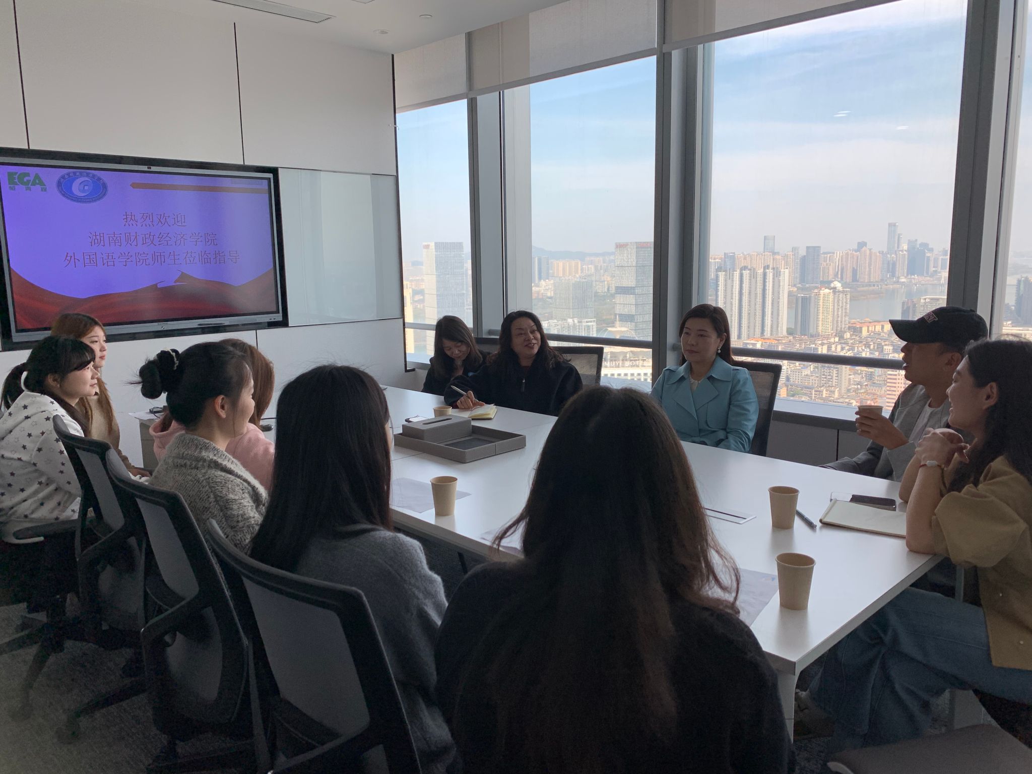(本网讯)3月13日,外国语学院党委书记凌飞、党委副书记张鹏、学工办主任肖叶枝带领2026届毕业生代表前往长沙市恒青程教育咨询有限公司开展访企拓岗专项活动。