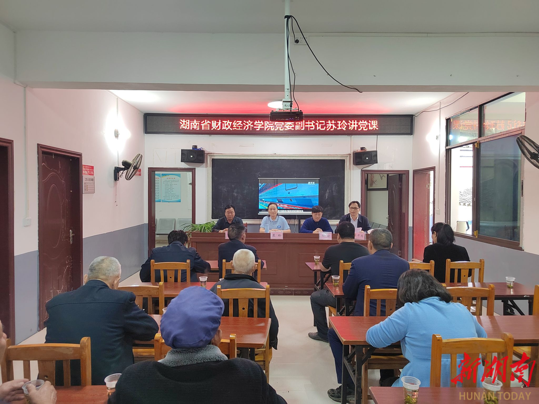 近日,湖南财政经济学院校党委副书记苏玲深入双峰县杏子铺镇江口村,为当地党员村民们带去一堂生动的党课。