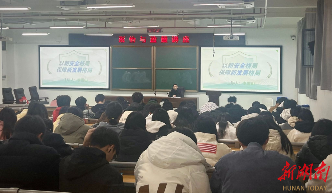 12月13日上午,湖南财政经济学院校纪委书记李雪山在雷锋校区L1115教室为雷锋学院、马克思主义学院师生作“形势与政策”专题讲座。