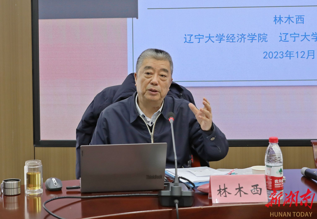12月13日下午,辽宁大学国民经济研究院院长林木西教授应邀来湖南财政经济学院作题为“推进和拓展中国式现代化的经济学思考”的学术讲座。讲座由校长刘长庚主持,经济学院、财政金融学院、数学与统计学院教师代表及联合培养博士研究生参加。