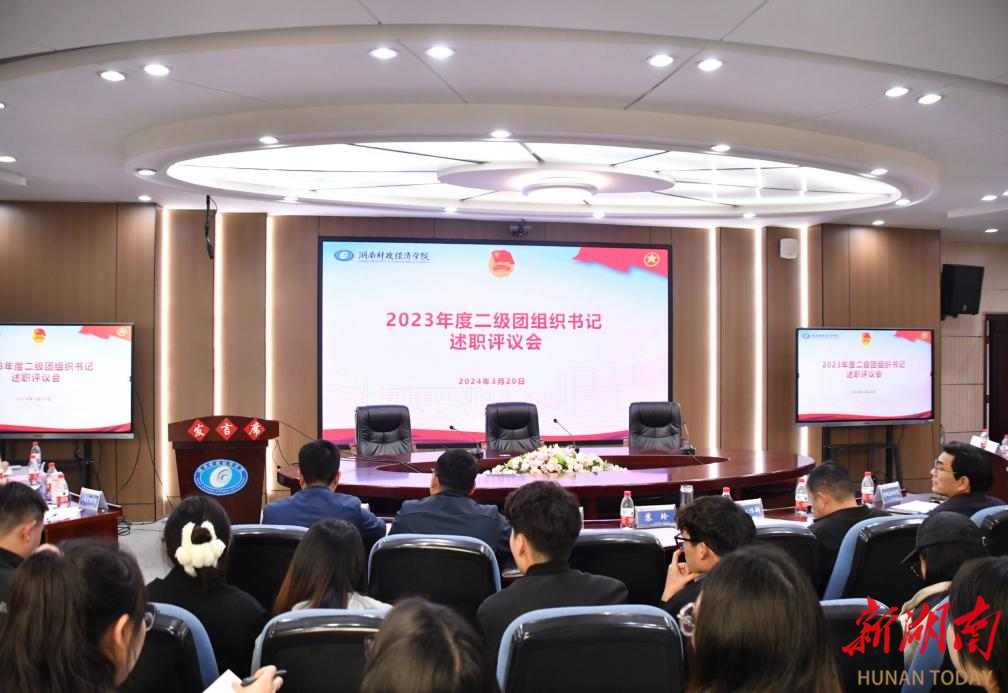 3月20日下午,湖南财政经济学院2023年度二级团组织书记述职评议会在办公楼5楼视频会议室召开。校党委副书记苏玲,组织部、学生工作部、就业创业中心、团委主要负责人,各二级学院党组织副书记、团总支书记以及校、院两级学生干部代表参加会议。会议由校团委书记刘天浩主持。