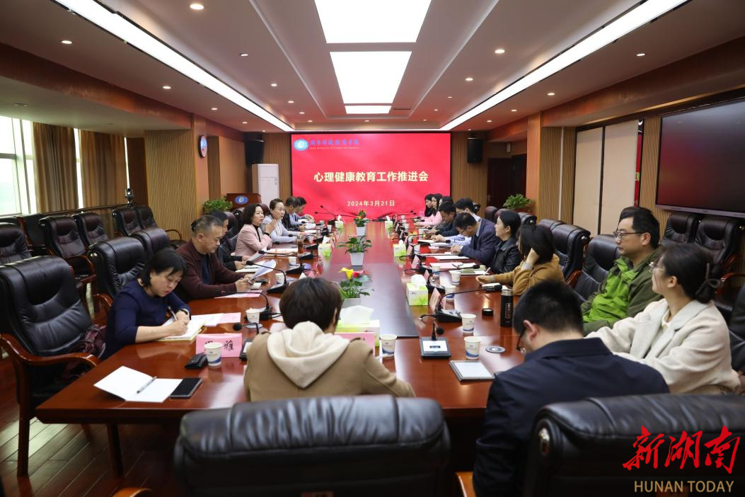 3月21日,湖南财政经济学院心理健康教育工作推进会在办公楼715会议室召开。校党委书记杨兰英出席并讲话,校党委副书记苏玲主持,学生工作部、教务处、雷锋学院、体育学院负责人等参加会议。