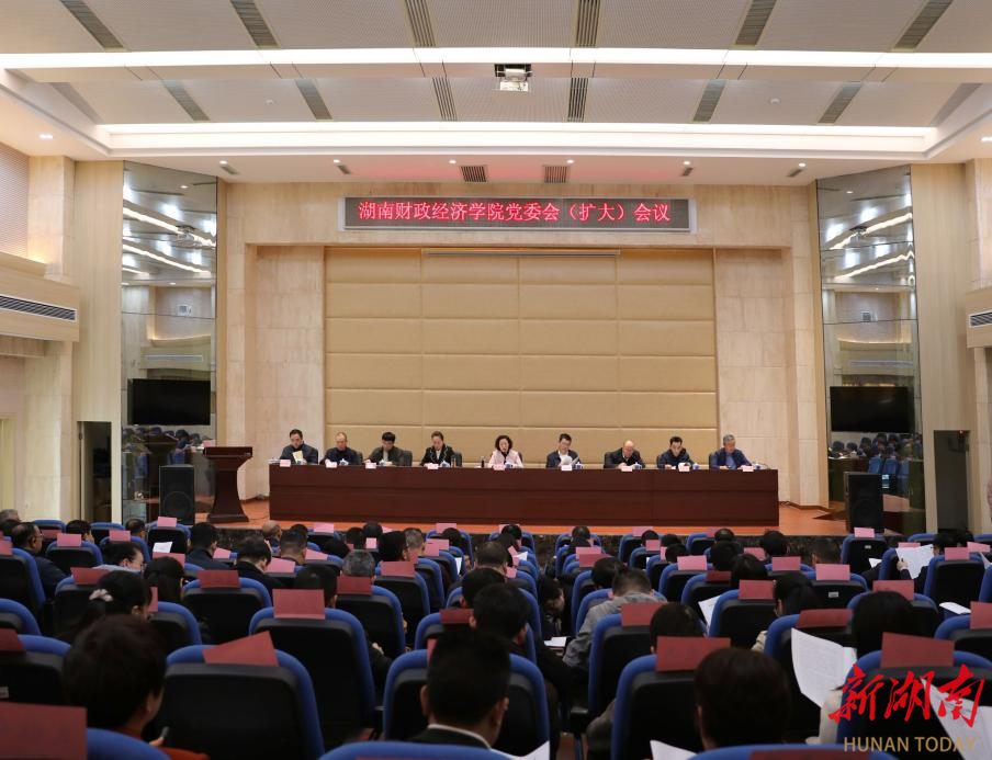 3月25日下午,湖南财政经济学院在主校区图书馆学术报告厅召开党委会(扩大)会议,传达学习习近平总书记在湖南考察时的重要讲话指示精神、在新时代推动中部地区崛起座谈会上的重要讲话精神以及省委常委会(扩大)会议精神,研究部署学校学习宣传贯彻工作。校党委书记杨兰英主持会议。全体校领导、中层干部以及湖南经地科技发展有限公司主要负责人参加会议。