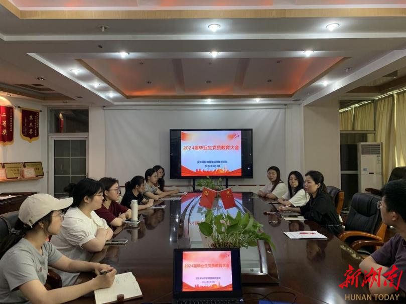为进一步做好2024届毕业生党员教育管理工作,提高毕业生党员的思想觉悟、党员意识、党性修养和社会责任感,6月3日,湖南财政经济学院厚生国际教育学院在办公楼830会议室召开毕业生党员教育大会。院直属党支部书记肖平飞、 直属支部组织委员马艳以及毕业生党员参加会议。