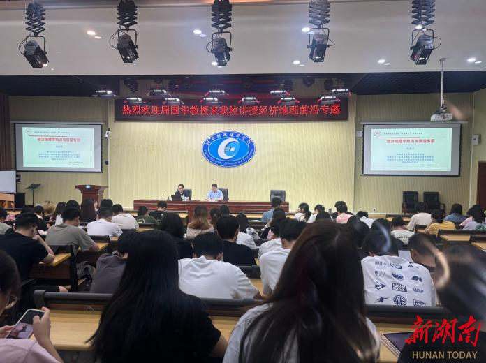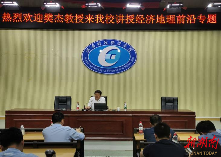 近日,湖南财政经济学院经济地理学院举办2024年暑期课程名家讲学活动,邀请全国政协常委樊杰教授、上海财经大学城市与区域科学学院院长张学良教授、湖南师范大学地理科学学院院长周国华教授以及南京师范大学地理科学学院院长黄昌春教授讲授《经济地理前沿专题》课程。活动分别由经济地理学院院长彭文斌、副院长苏昌贵主持,经济地理学院200余名师生积极参与。
