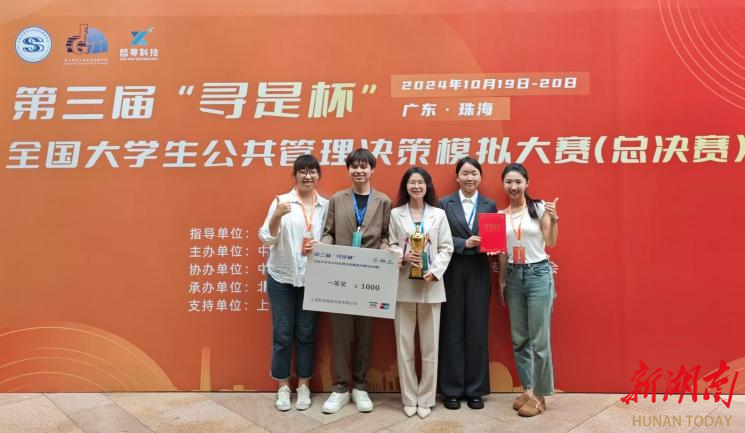 10月20日,从第三届“寻是杯”全国大学生公共管理决策模拟大赛总决赛中传来喜讯,由湖南财政经济学院法学与公共管理学院行政管理系主任侯丹丹和社会工作系主任刘曼格带队,2021级本科生谢涛、李文艳、骆鹃组成的“益才善水队”斩获大赛一等奖。同时,侯丹丹、刘曼格荣获优秀指导教师奖。