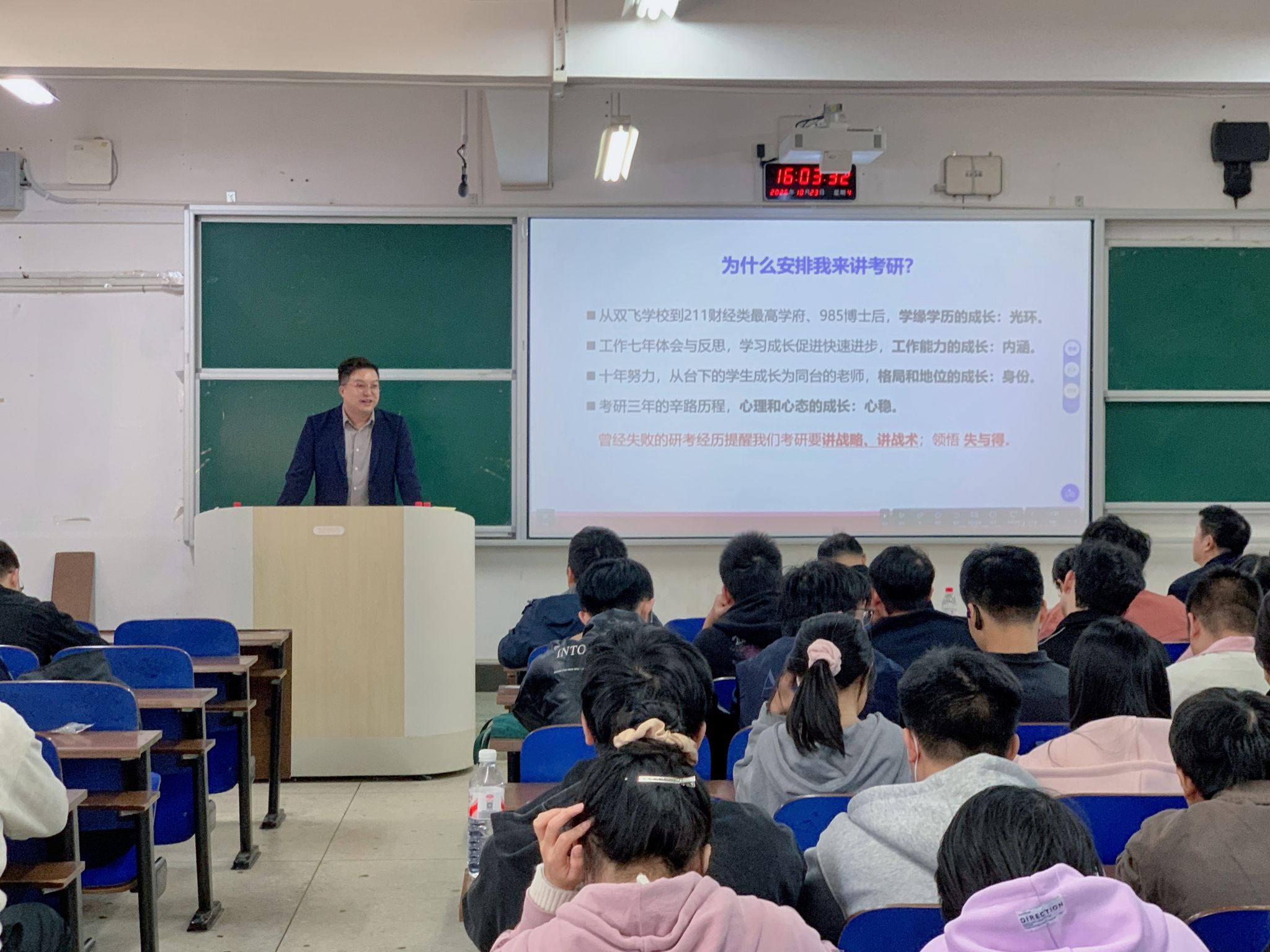 苏昌贵在总结发言中鼓励同学们,要将考研规划转化为具体行动,将备考信心凝聚为前进动力。他表示,学院将始终作为同学们考研路上的坚强后盾与温暖港湾,全力支持每一位学子的升学梦想。