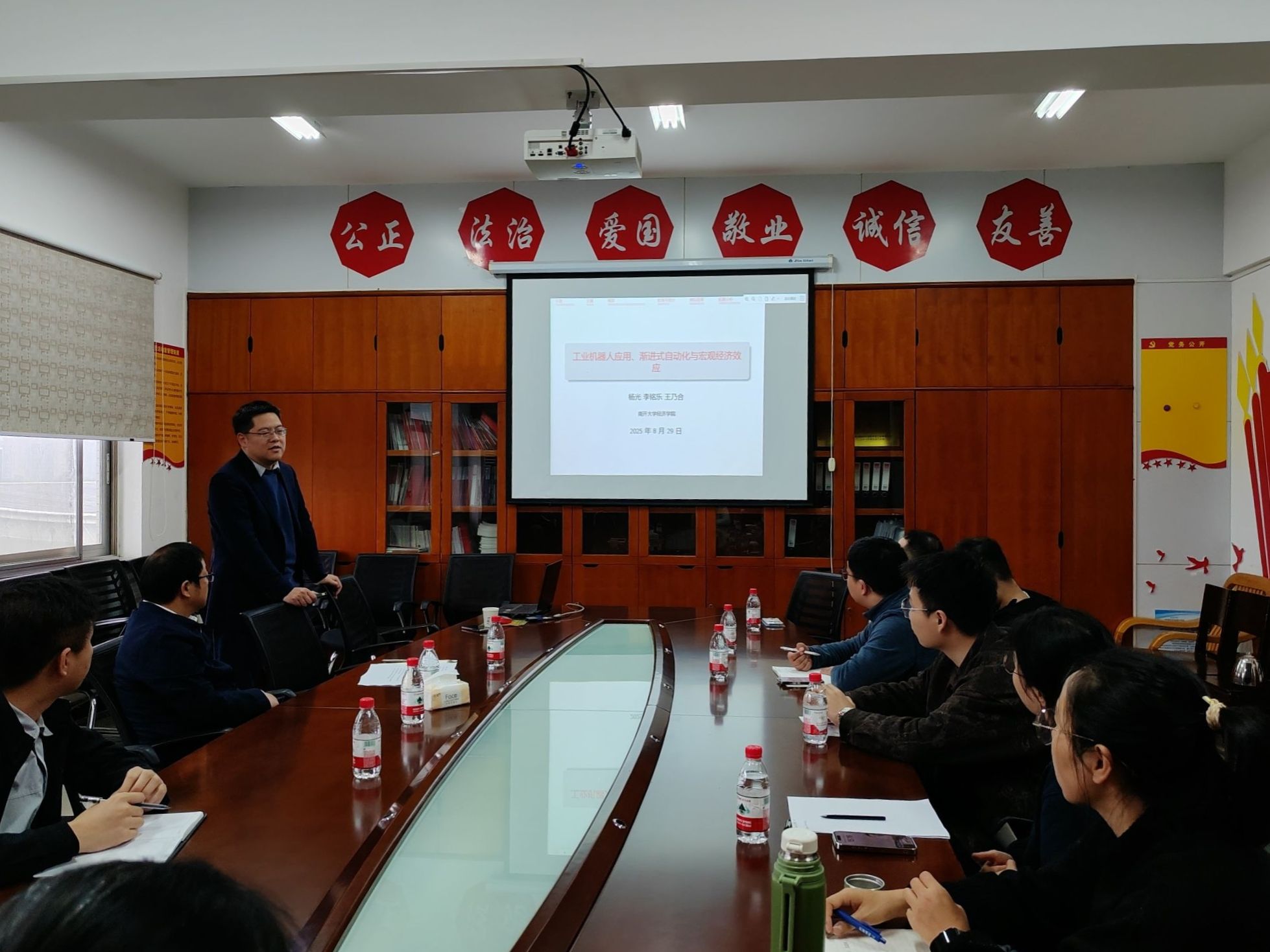 (本网讯)11月8日下午,应大数据与统计学院邀请,南开大学杨光副教授在学校办公楼809会议室作了题为“工业机器人应用、渐进式自动化与宏观经济效应”的学术报告。报告会由院长尹向飞主持,学院领导、青年教师参加会议。