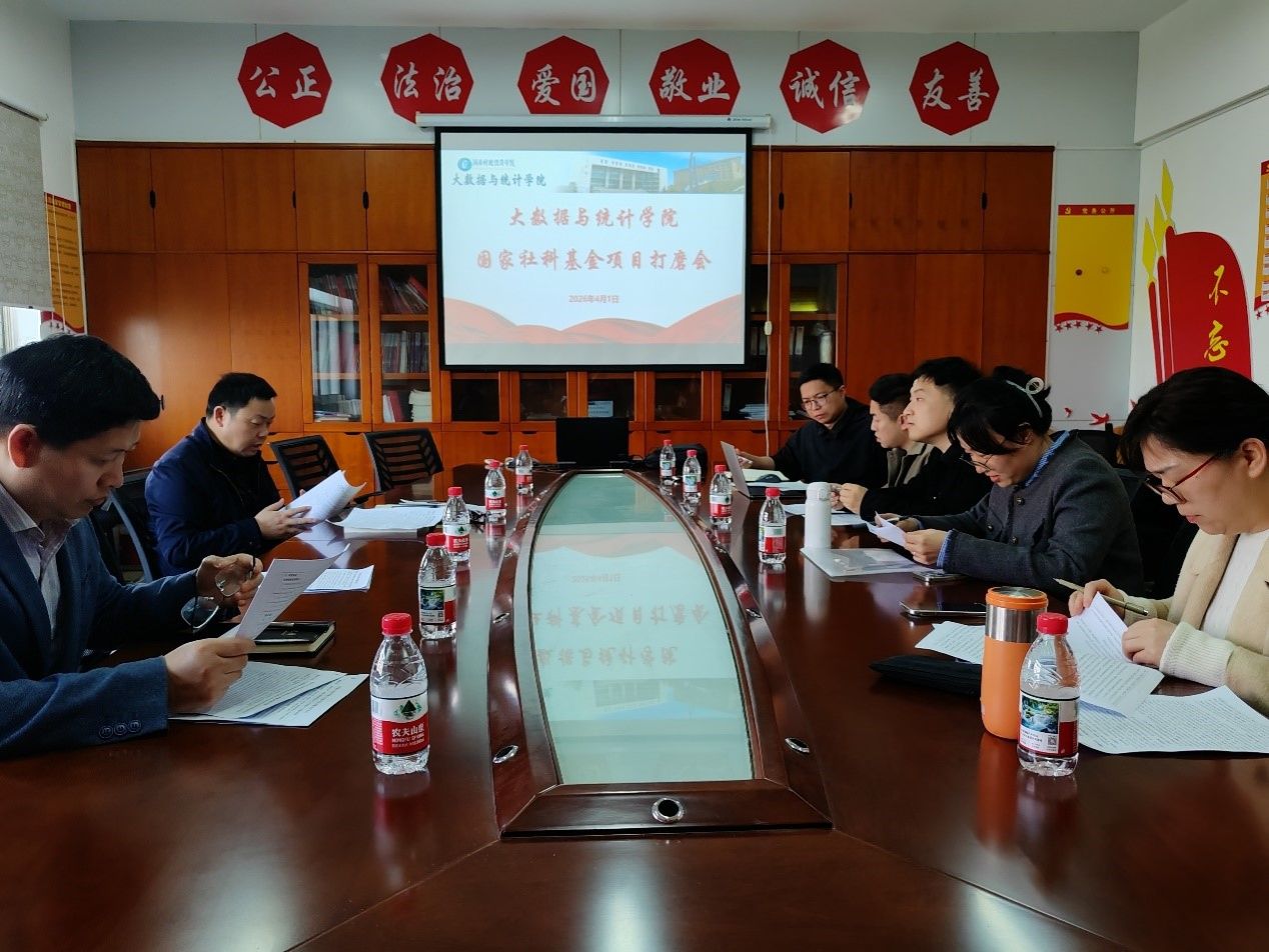 (本网讯)4月1日下午,大数据与统计学院在办公楼809会议室召开2026年度国家社科基金项目打磨会。学院领导、拟申报项目教师参会。