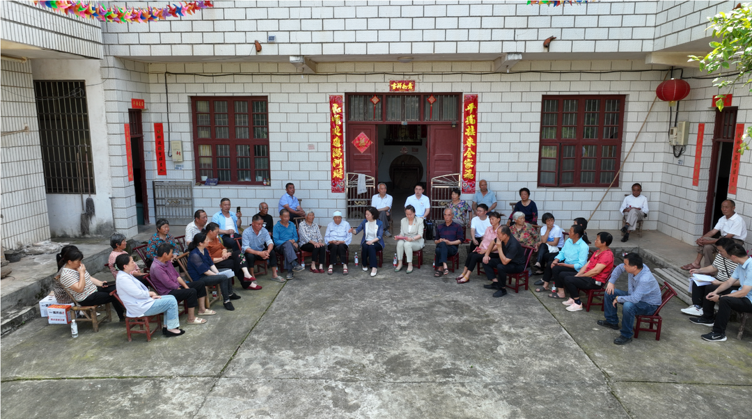 午后的阳光越过墙头,投入一片阴凉。在一户农家屋场,校党委书记杨兰英正在为江口村的党员干部、农户、小学教师宣讲党的二十大精神。她娓娓讲述了精准扶贫出发地——湖南湘西州花垣县十八洞村在党的精准扶贫政策春雨滋润下,千年苗寨“华丽转身”,在新时代“山乡巨变”的故事,介绍了湖南财政经济学院的基本情况。她还和大家探讨了如何结合学校和江口村的优势,将江口村打造为产业兴旺、生态宜居、乡风文明、治理有效、生活富裕的和美乡村。