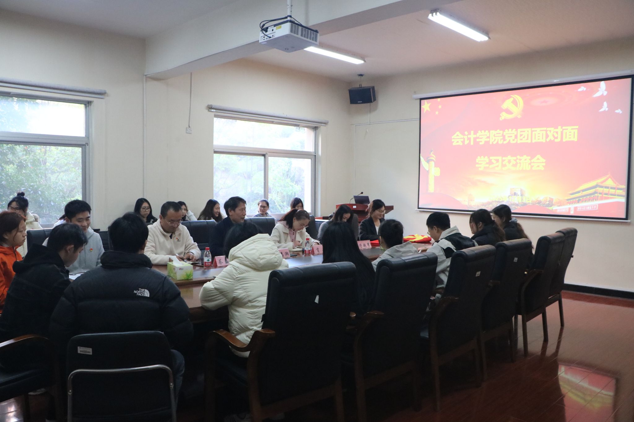 (本网讯)12月3日,会计学院在办公楼215会议室举办“党团面对面”学习交流会,30余名师生党员、团员代表围绕理论学习和实践成长进行交流。