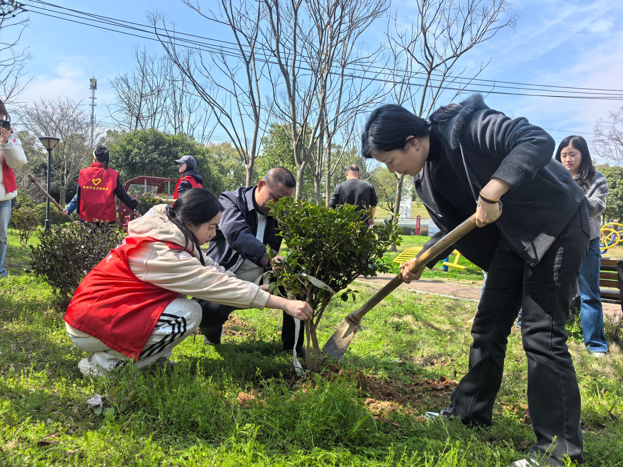 活动中,党员教师率先垂范,充分发挥先锋模范作用,带领学生党员和青年志愿者分工协作,有序完成挖坑、扶苗、填土、浇水等植树流程。大家不怕脏、不怕累,用心呵护每一株新苗,用行动传递文明风尚,为社区增添盎然绿意。
