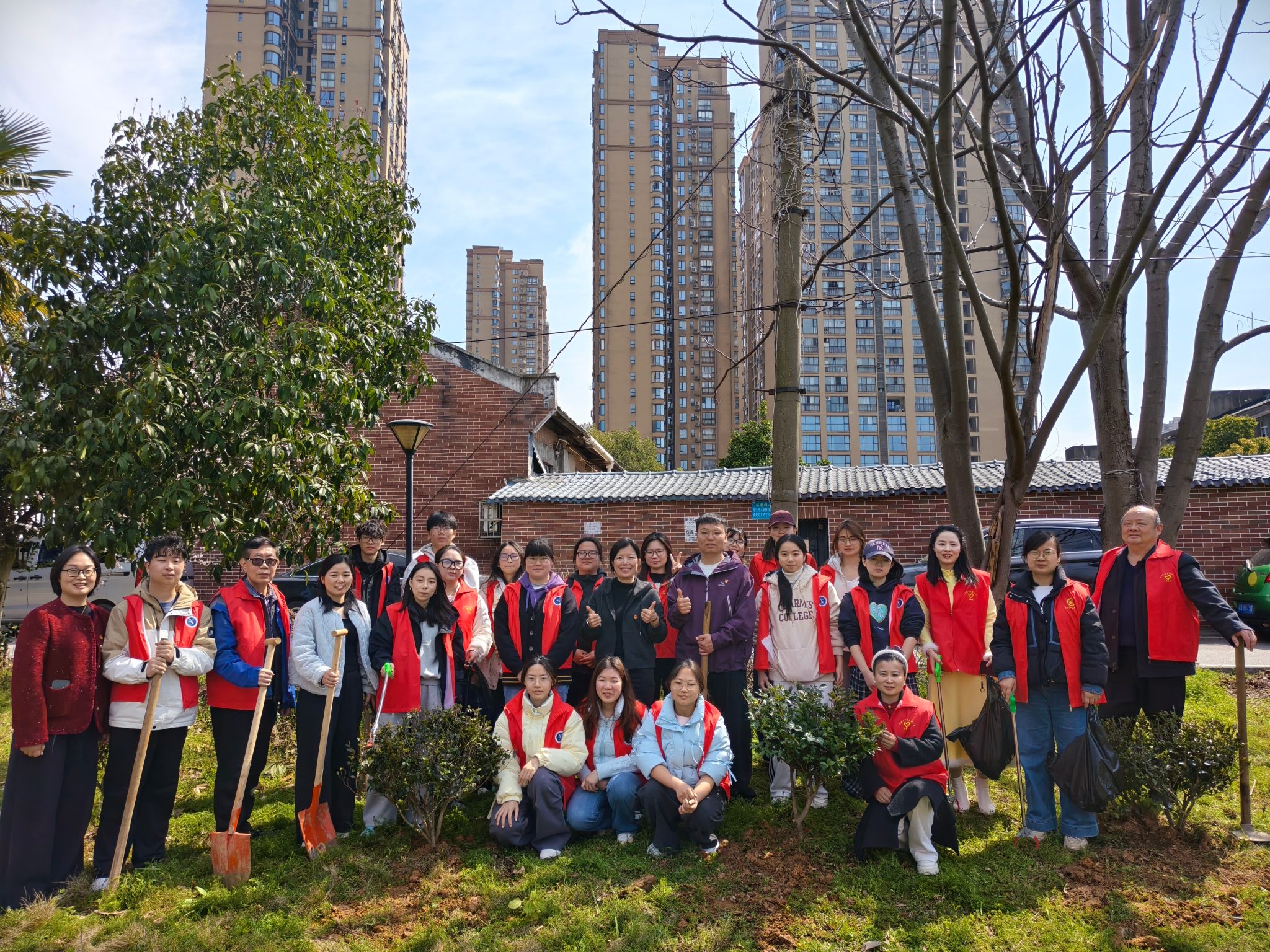 (本网讯)为弘扬雷锋精神,深化党建带团建、校社共建工作实效,3月13日上午,厚生国际教育学院直属党支部书记肖平飞带领学生党员、青年志愿者,赴湘江新区望新社区开展“爱绿护绿植树节”学雷锋志愿服务活动。