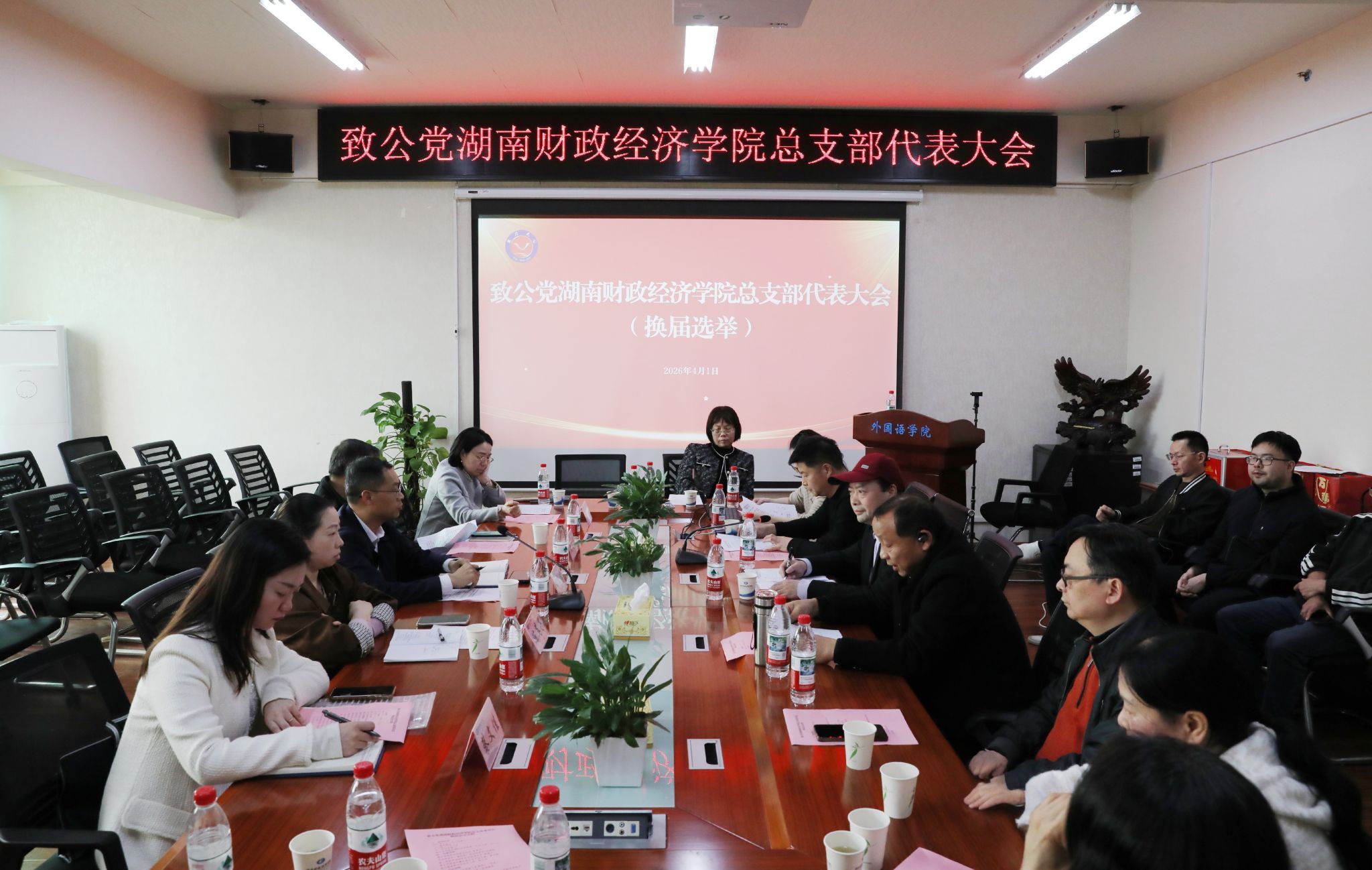会议宣读了《省直工委关于致公党湖南财政经济学院总支部委员会换届及候选人的批复》。随后,大会严格按照《中国致公党章程》及换届选举工作程序,选举产生了新一届总支部委员会。贺飞跃当选为总支部主委,胡广云、彭屹松当选为副主委,熊帅梁、刘超群当选为委员。
