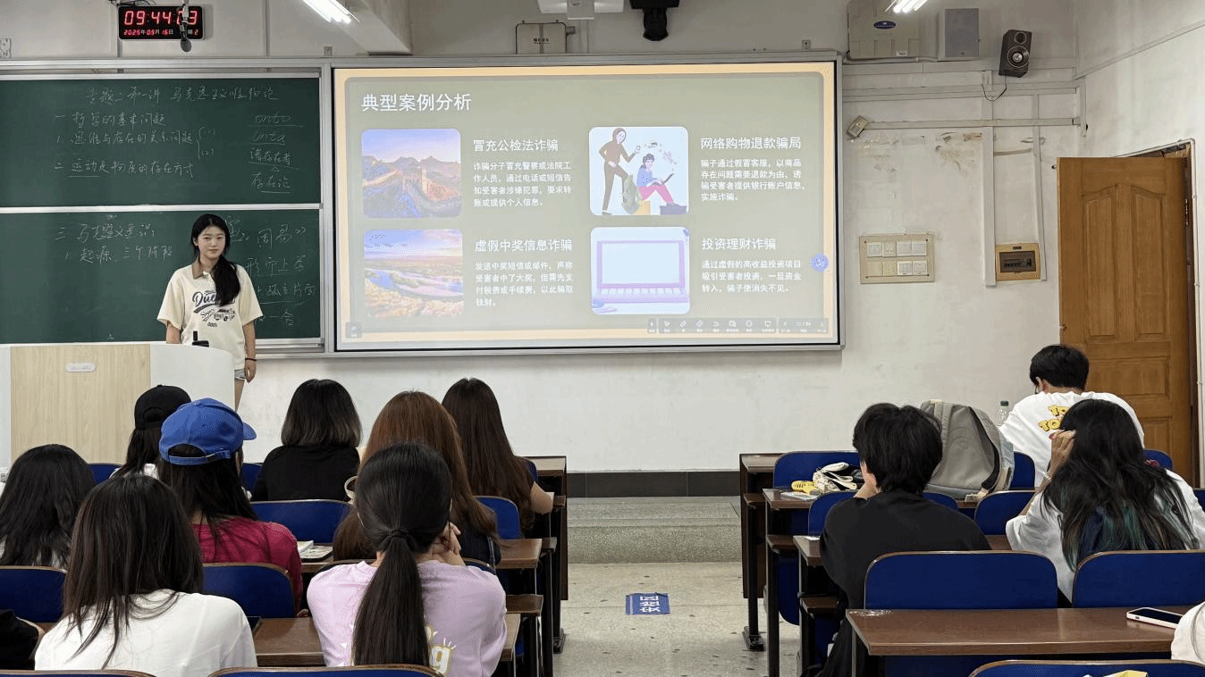 各班班委以《大学生防骗指南》为教材,围绕“不轻信、不转账、多核实”三大防骗原则,通过播放反诈宣传片、展示案例分析PPT等形式,深入解析了刷单兼职、中奖诈骗、冒充公检法等当前高发电信网络诈骗手法,并针对个人信息保护、不明链接规避等实用技巧进行了深入讲解。辅导员结合近期高校发生的“高薪代练”等真实案例,从诈骗话术、心理弱点、防范要点等角度进行剖析,警示学生“诈骗就在身边”。