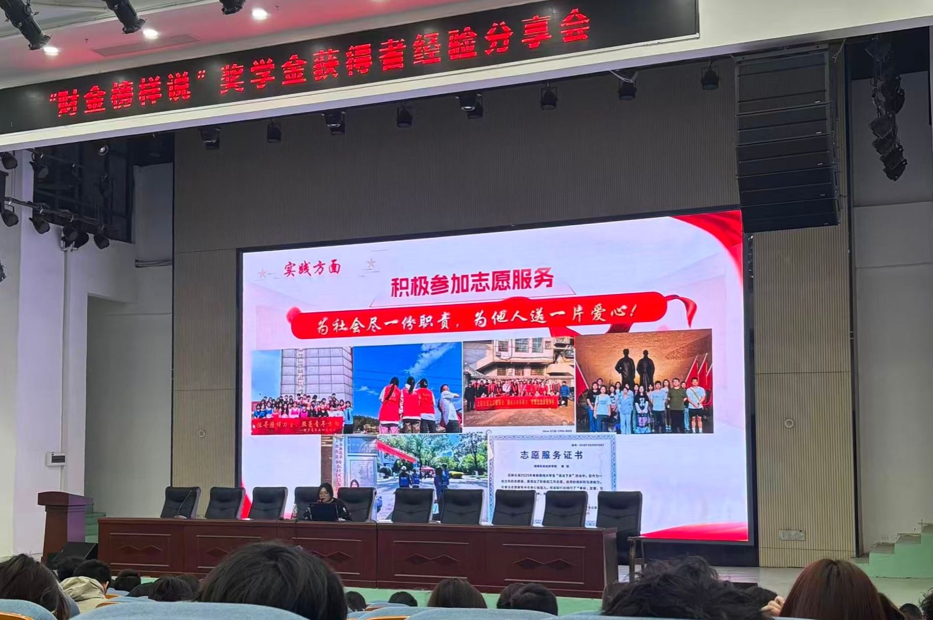 (本网讯)为充分发挥优秀学生的榜样作用,推进学风建设,12月11日,财政金融学院在雷锋校区举办“财金榜样说”学习经验分享会。活动紧扣“学业引领与成长赋能”主题,特邀国家奖学金获得者曹琪、林鹏峻,校级一等奖学金获得者刘文凤三位同学,面向2025级新生分享学习与成长经验。