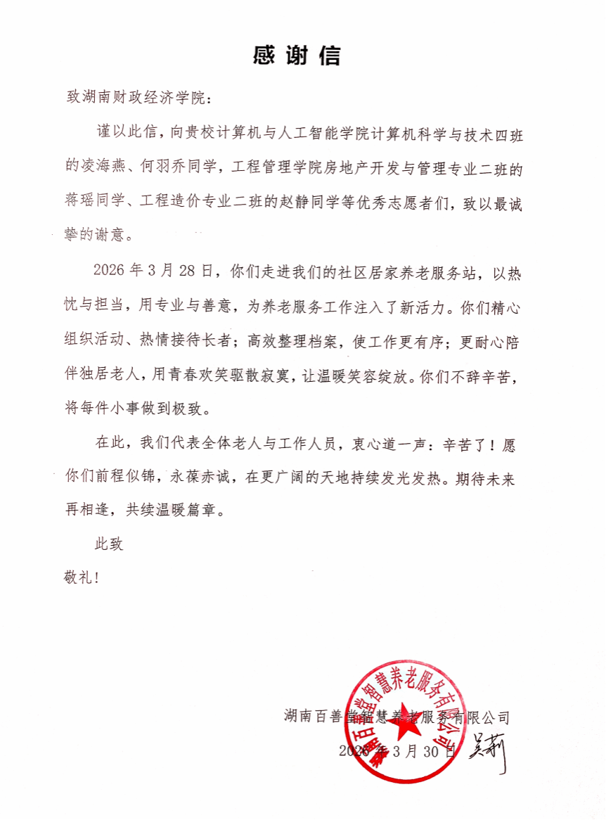 3月28日,工程管理学院联合计算机与人工智能学院、校青年志愿者协会等,组织多支志愿小队深入百善堂、雨敞坪社区等8个社区,开展“上门式”便民服务。志愿者们陪老人聊天谈心、闲话家常,倾听他们的心声;手把手教他们使用智能设备、办理线上缴费,助力他们跨越“数字鸿沟”,享受智慧生活便利。此外,志愿者们还主动协助社区整理信息、清扫环境,用实际行动践行雷锋精神。